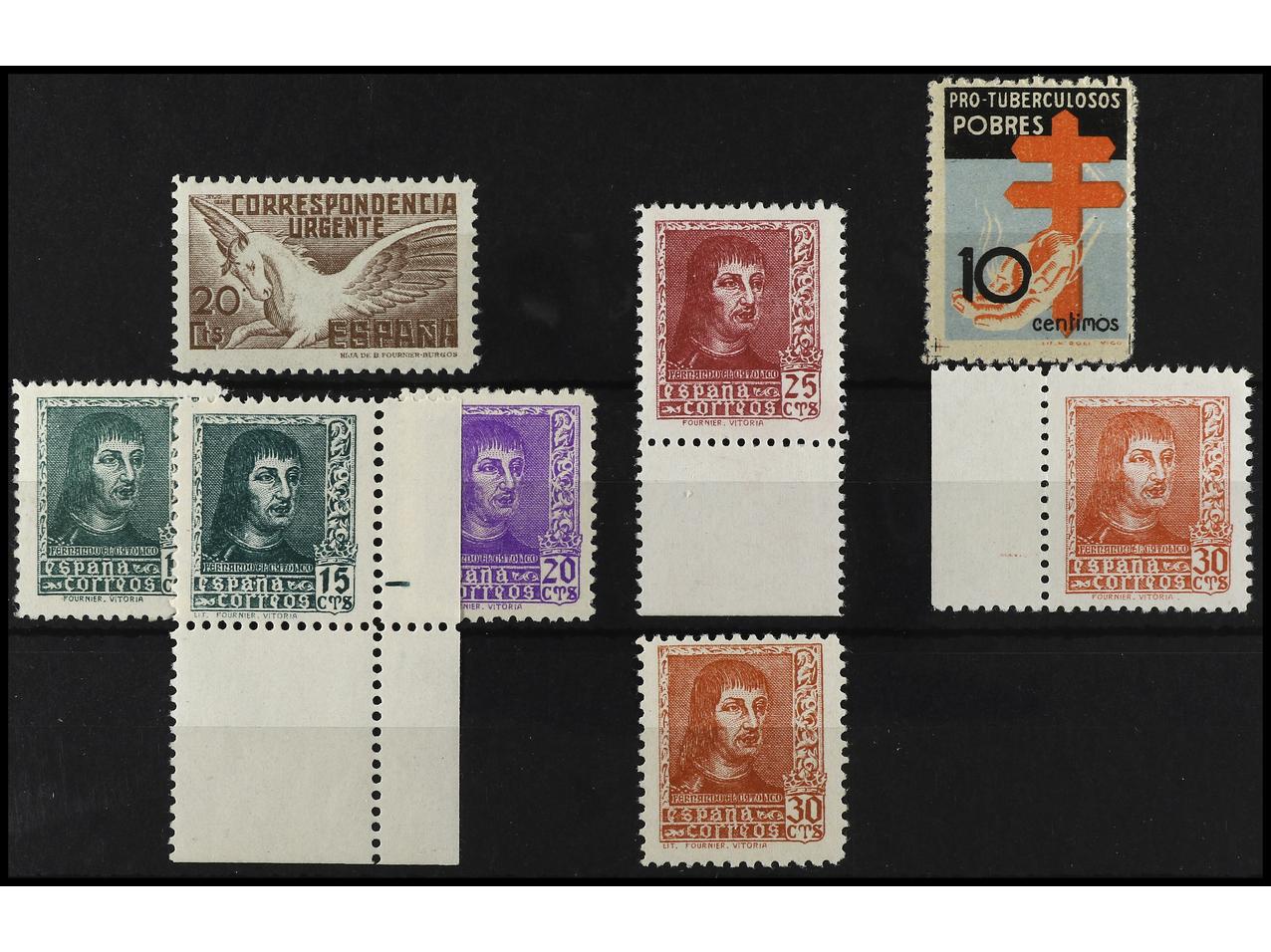 ESPAÑA. Ficha conteniendo: ** 829s, 833/35 (goma no original) y 840 (2 ejemplares) y 861s. Cat. +221€. (Image1)