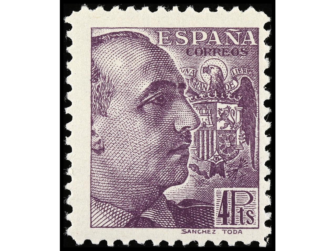 ESPAÑA. PRUEBA engomada en bloque de 4 SIN VALOR EN EL CARTUCHO en el color del 40 cts. PRECIOSA. RARA. Ed.870P. (Image1)