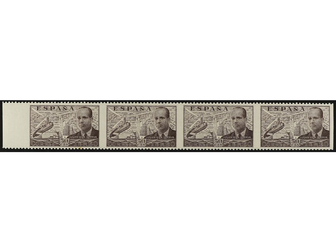 ESPAÑA. 50 cts. castaño. Tira de cuatro SIN DENTADO VERTICAL. Ed.883sv (4). Cat. +100€. (Image1)