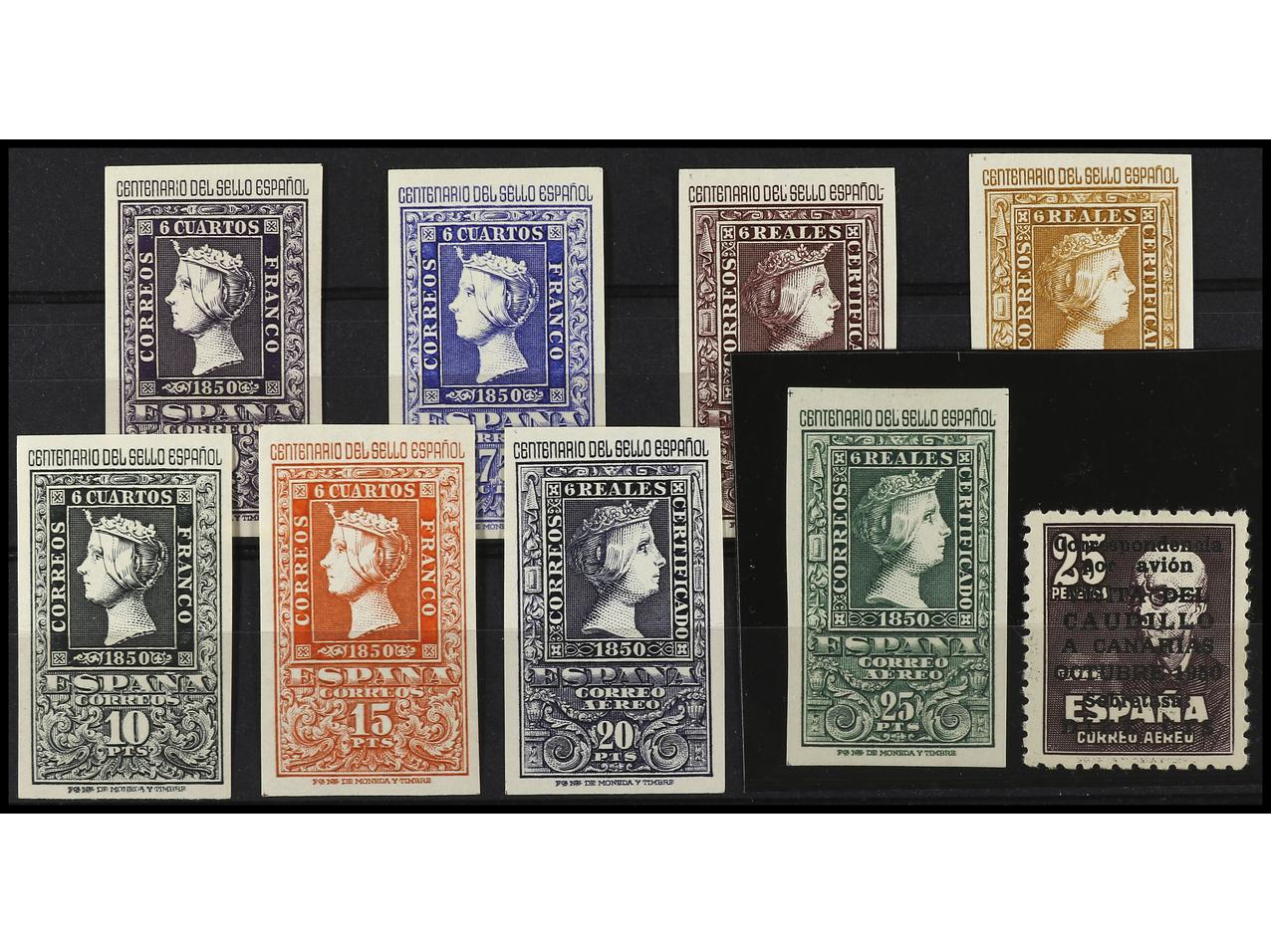 ESPAÑA. CENTENARIO y CANARIAS AVIÓN CON NÚMERO. 9 valores. LUJO. Sello Ed. 1090 cert. CAJAL. Ed.1075/82, 1090. Cat. 1.475€. (Image1) (Image2)
