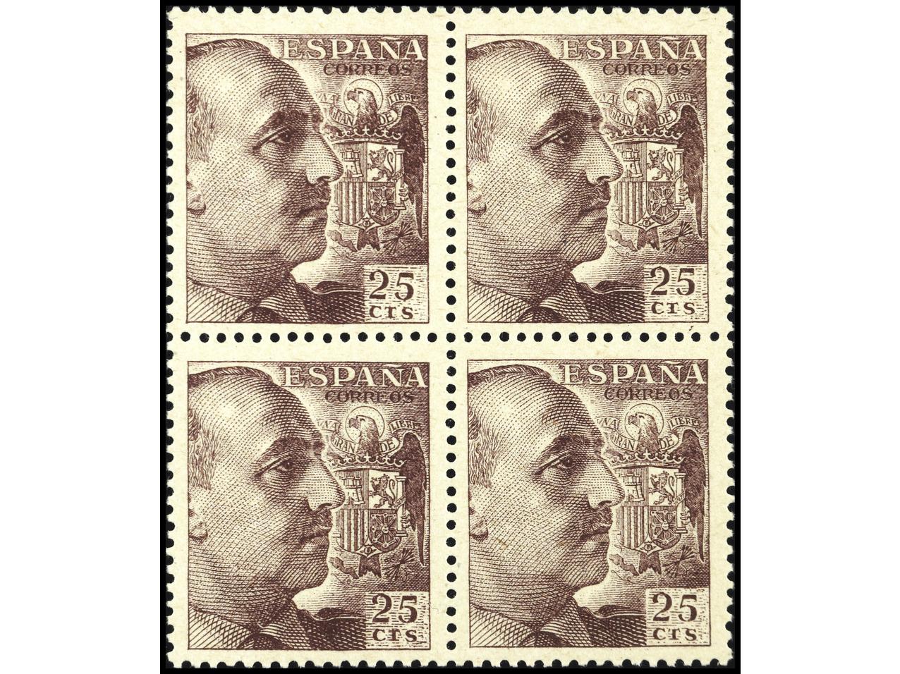 ESPAÑA. 25 cts. lila oscuro en bloque de 4. MUY BONITO. Ed.1048A(4). (Image1)