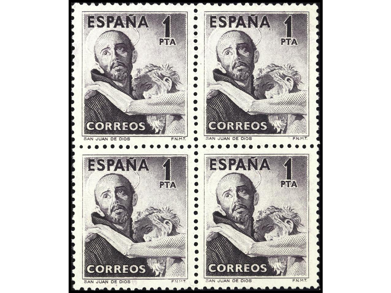 ESPAÑA. SAN JUAN DE DIOS. Bloque de 4. Bien centrado. Ed.1070(4). Cat. +124€. (Image1)