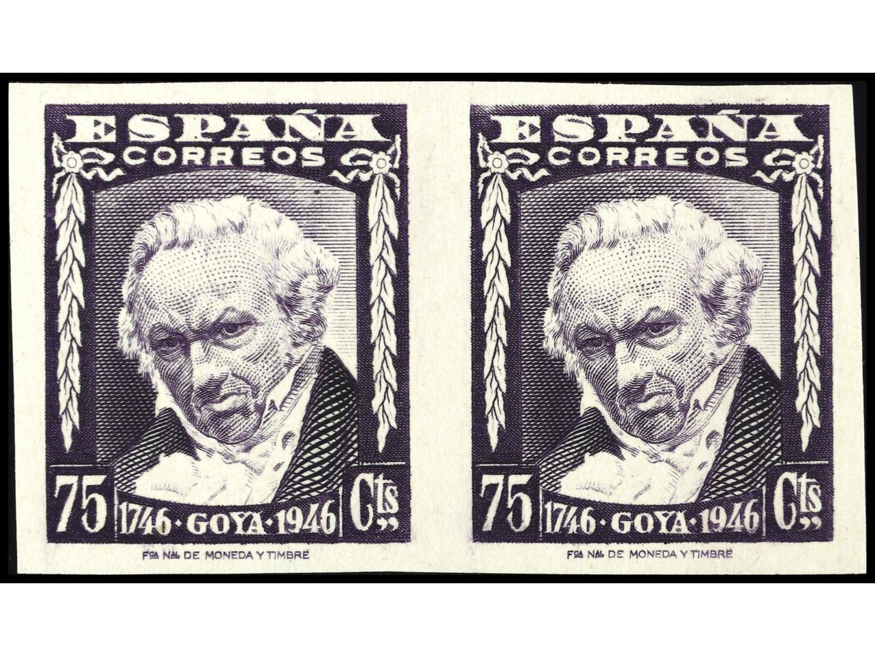 ESPAÑA. 75 cts. violeta en pareja horizontal SIN DENTAR. COLOR CAMBIADO. PRECIOSA. RARA. Ed.1007ccas. Cat. 380€. (Image1)