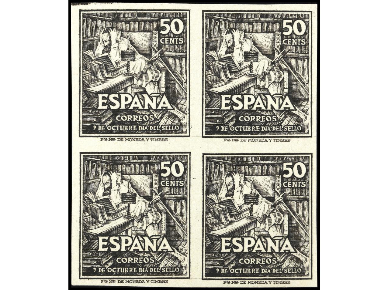 ESPAÑA. 50 cts. negro en bloque de 4 SIN DENTAR. PRECIOSO. RARO. Ed.1012s(4). Cat. 320€. (Image1)