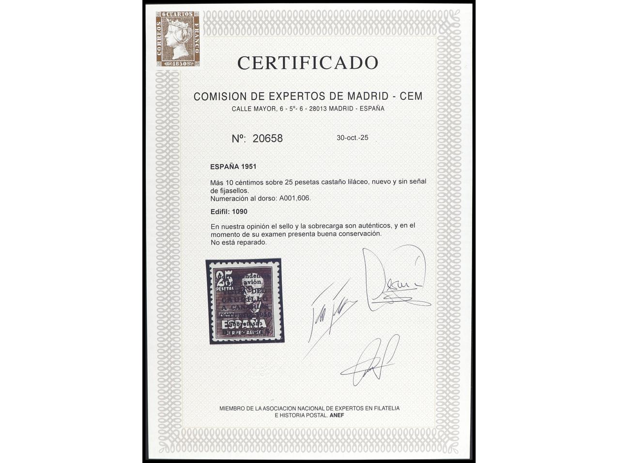 ESPAÑA. 10 cts. s. 50 cts. lila I tirada y 10 cts. s. 1 pta. rosa II tirada y variedad ´CAUDILLO´ corto. Ed.1083A y 1089he. Cat. +340€. (Image1) (Image2)