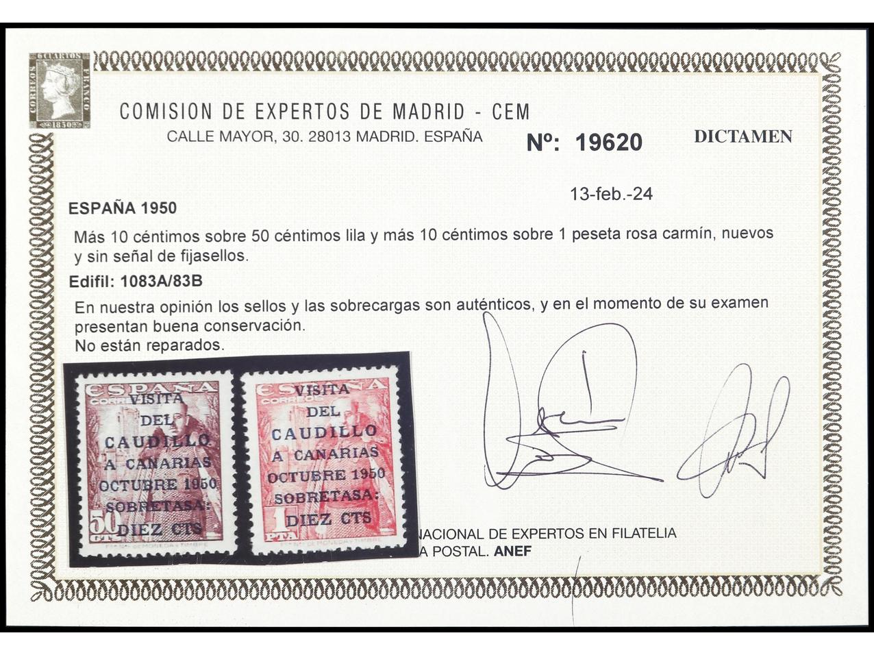 ESPAÑA. CAUDILLO A CANARIAS. SERIE COMPLETA. Dictamen CEM. MUY BONITA. RARA. OCASIÓN. Ed.1083A/B. Cat. 590€. (Image1) (Image2)