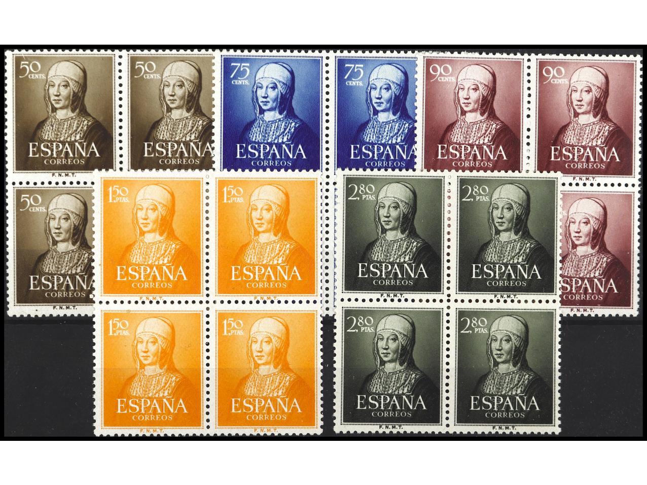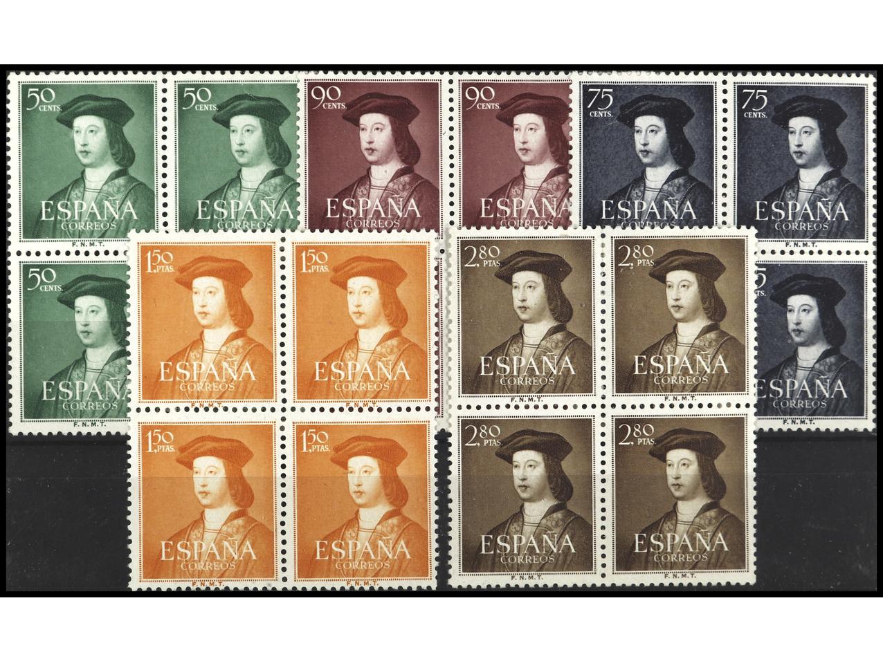 ESPAÑA. ISABEL TERRESTRE. SERIE COMPLETA en bloque de 4. MUY BONITA. OCASIÓN. Ed.1092/6(4). Cat. 364€. (Image1)