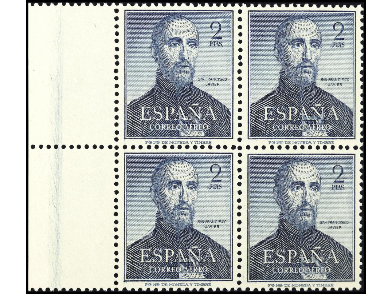 ESPAÑA. SAN FRANCISCO JAVIER. Bloque de 4 con borde lateral de hoja. Bien centrado. PRECIOSO. OCASIÓN. Ed.1118(4). Cat. +448€. (Image1)