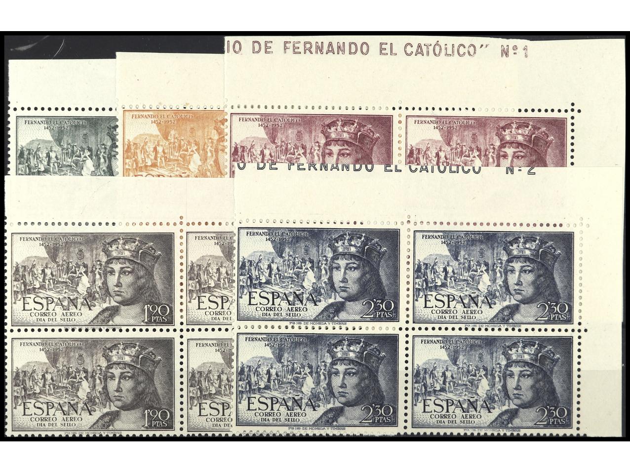 ESPAÑA. FERNANDO AÉREA. SERIE COMPLETA en bloque de 4 con esquina de pliego. PRECIOSA. OCASIÓN. Ed.1111/5(4). Cat. 134€. (Image1)