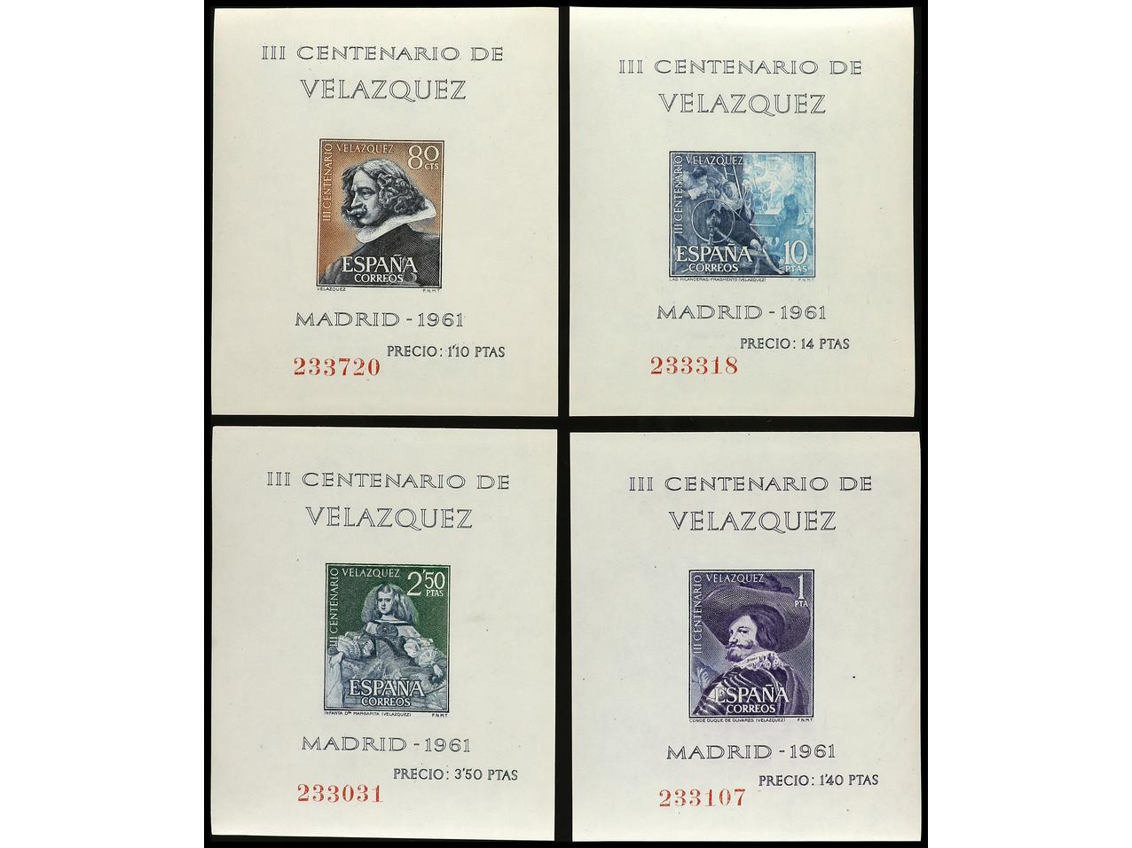 ESPAÑA. 1961. III CENT. DE VELAZQUEZ. Juego completo de 4 dípticos en perfecto estado. PRECIOSOS. RAROS. OCASION. Ed.1340M/3M. Cat. 400,-.
