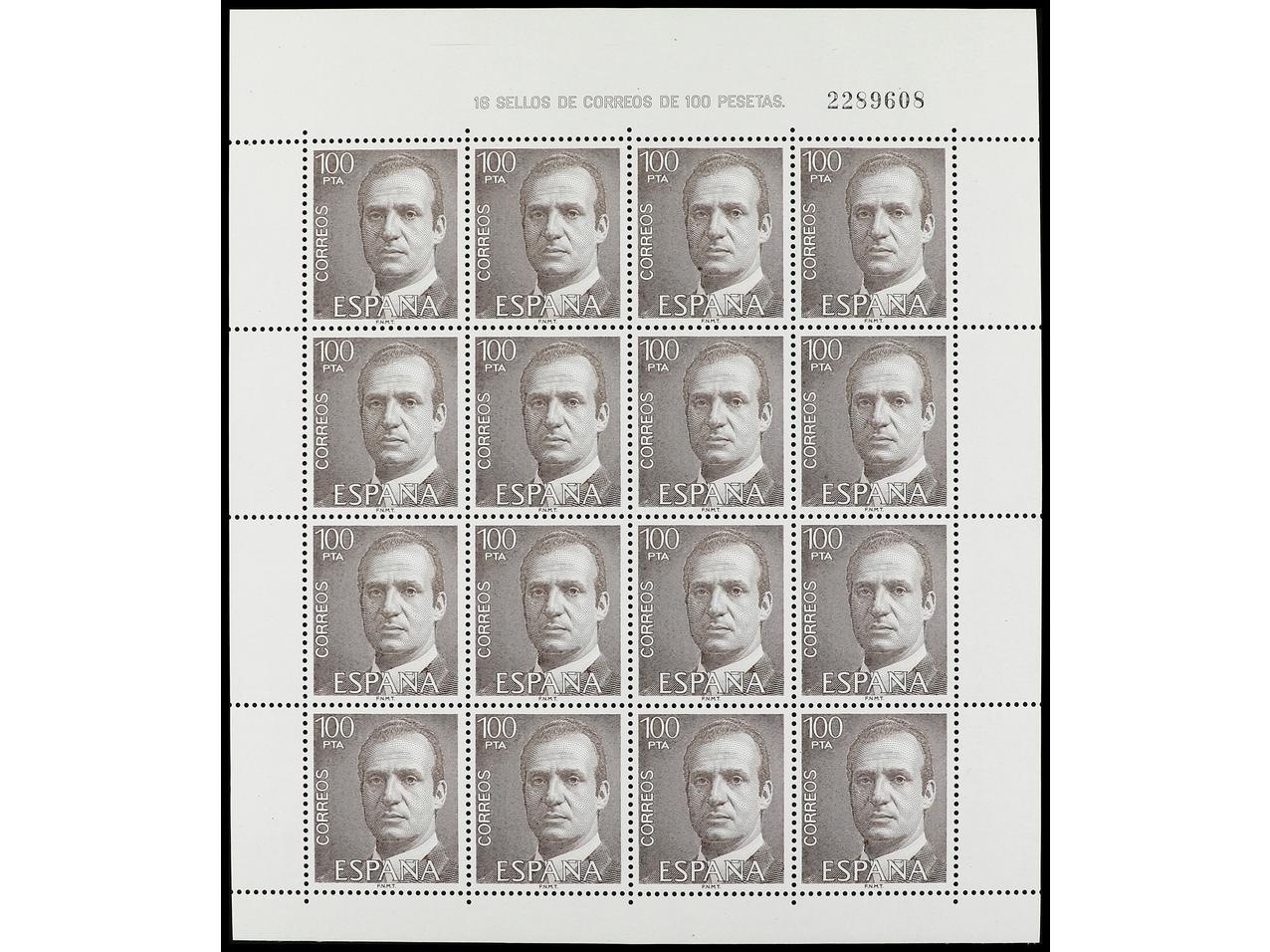ESPAÑA. 100 pts. castaño. MINIPLIEGO de 16 sellos. Ed.MP-1A. Cat. 200€. (Image1)