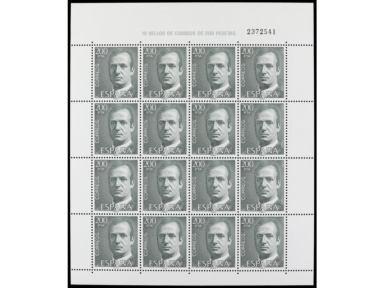 ESPAÑA. 200 pts. verde. MINIPLIEGO de 16 sellos. 3 ejemplares, 1 con diferente tonalidad. Ed.MP-1B (3). Cat. 300€. (Image1) (Image2)
