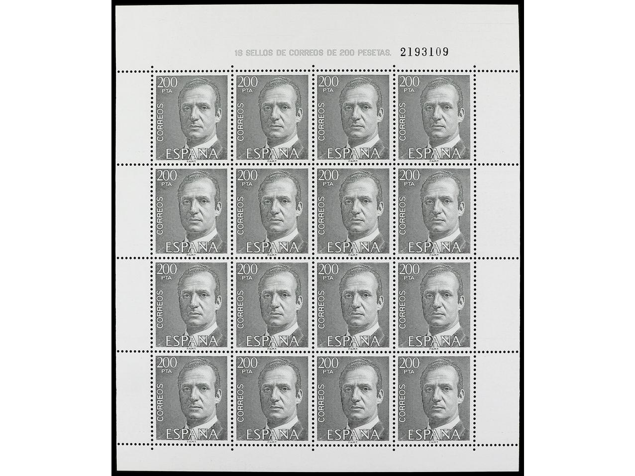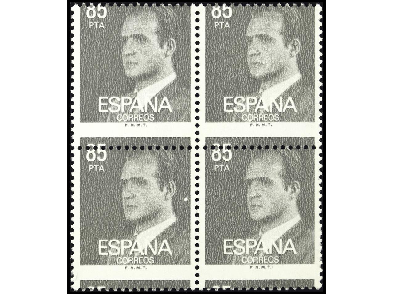 ESPAÑA. JUAN CARLOS I. 85 pts. gris en bloque de 8 con DENTADO HORIZONTAL DESPLAZADO VERTICALMENTE. OCASIÓN. Ed.2604dpv(8). Cat. 840€. (Image1)