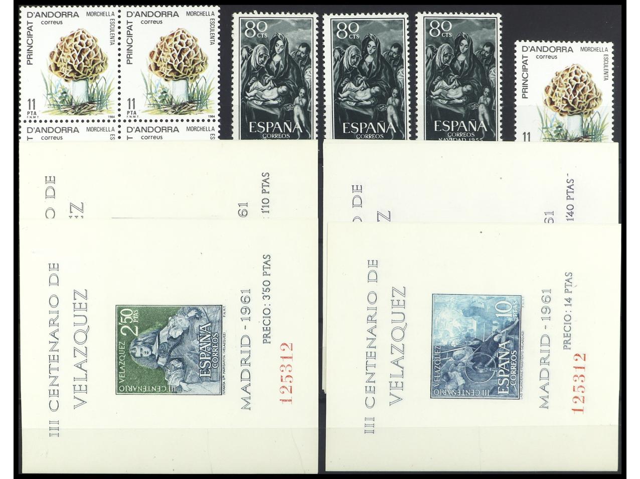 ESPAÑA. VELÁZQUEZ. 3 Juegos de HB. Además se añaden 3 sellos del 1184 (NAVIDAD) y 5 sellos de ANDORRA del 181. Buena calidad. Ed.1344/7(3). Cat. 134€.