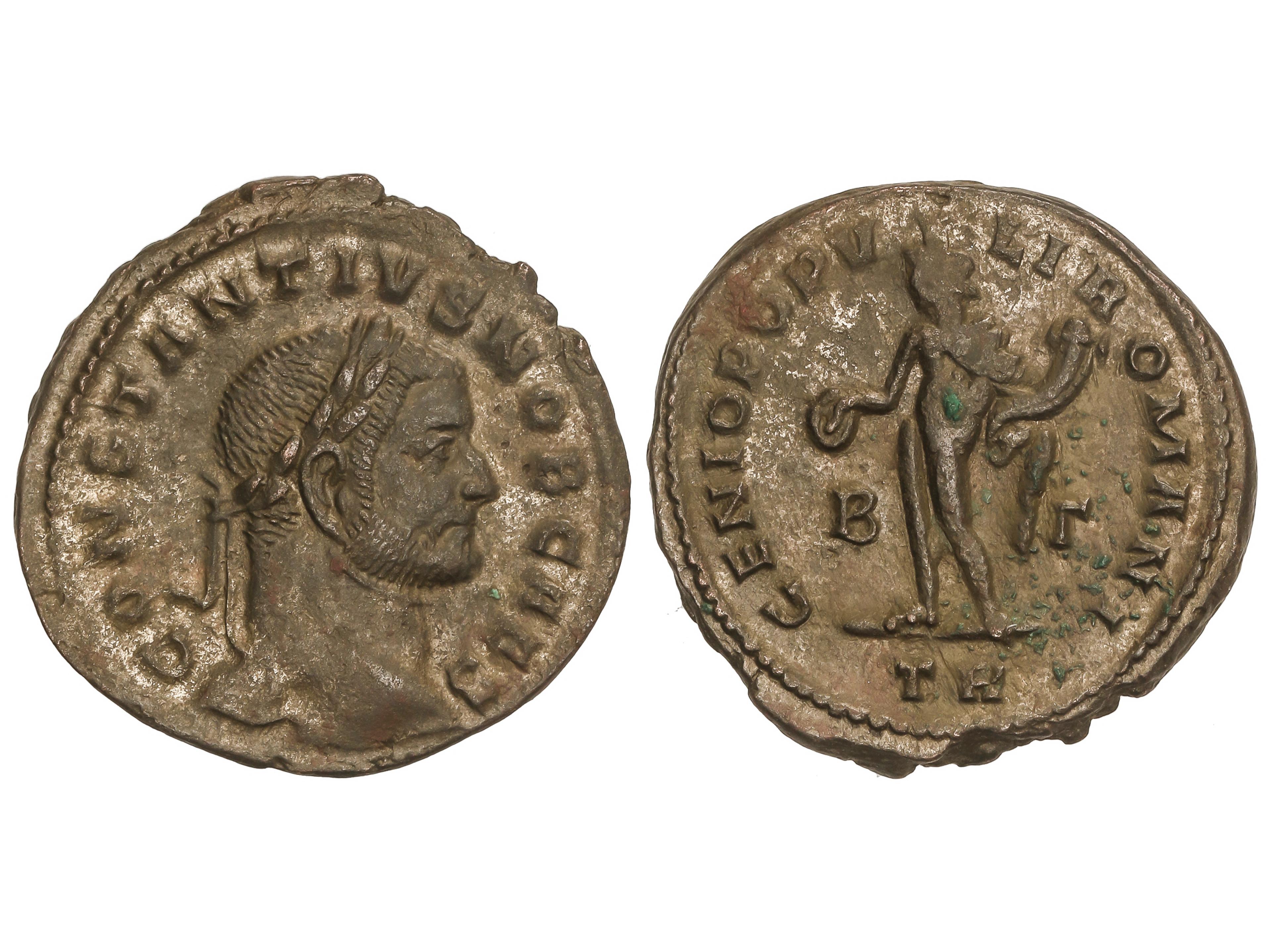 Follis. 298-299 d.C. CONSTANCIO CLORO. TREVERI. Rev.: GENIO POPVLI ROMANI. Genio entre B-R. En exergo: TR. 9,08 grs. AE. Restos de plateado original. C-61 sim. EBC-. (Image1)