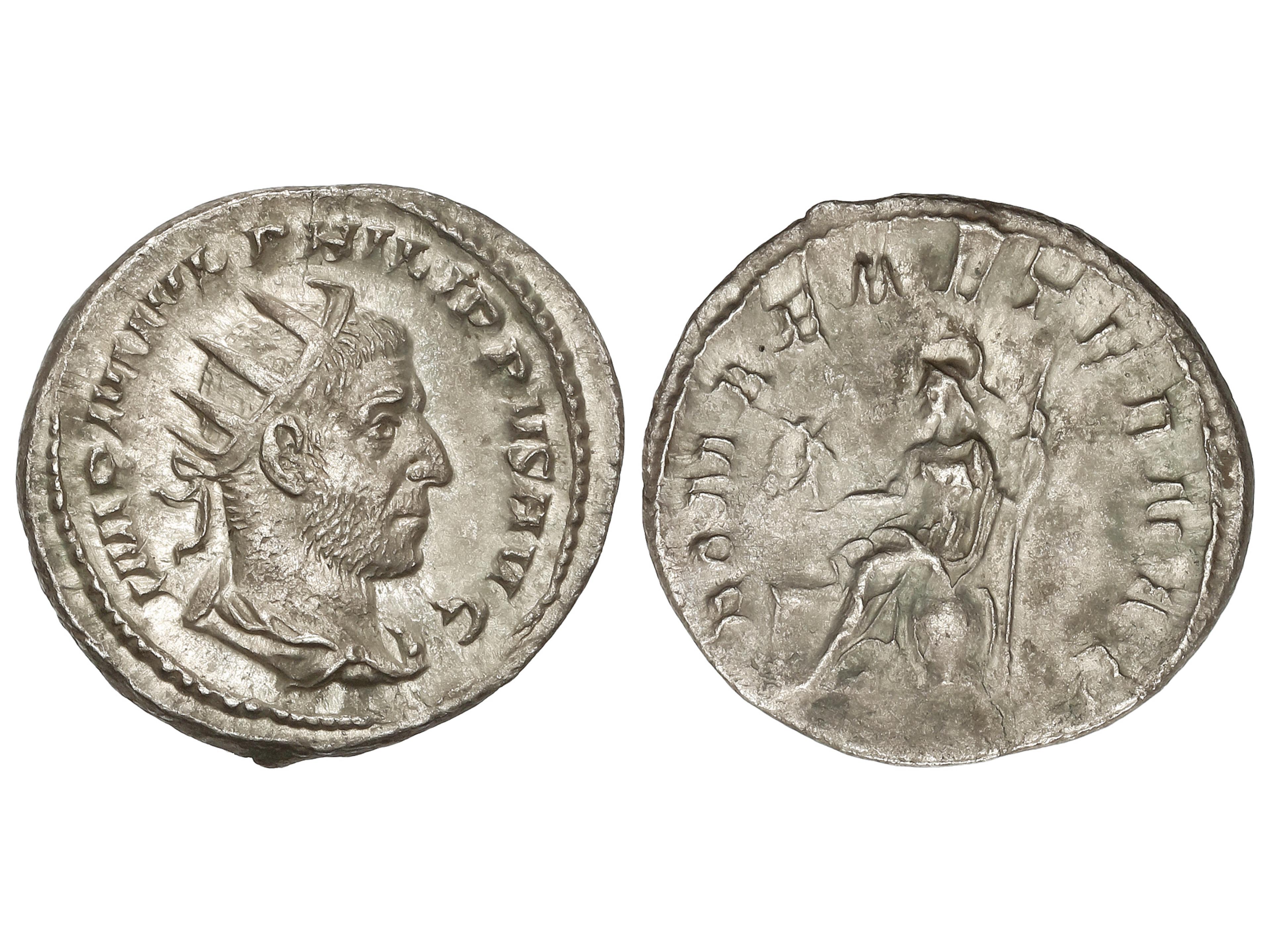 Antoniniano. 244-247 d.C. FILIPO I. Rev.: ROMAE AETERNAE. Roma sentada a izquierda con victoria en mano. 4,03 grs. AR. C-169; RIC-44. MBC+. (Image1)
