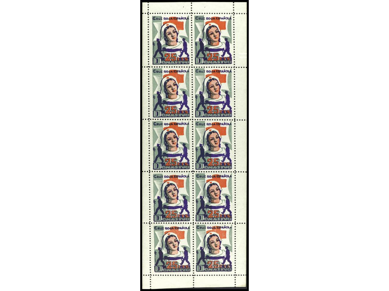 ESPAÑA GUERRA CIVIL. CRUZ ROJA ESPAÑOLA. 25 cts. Minipliego de 10 sellos. PRECIOSO. RARO. GG.1643. (Image1)