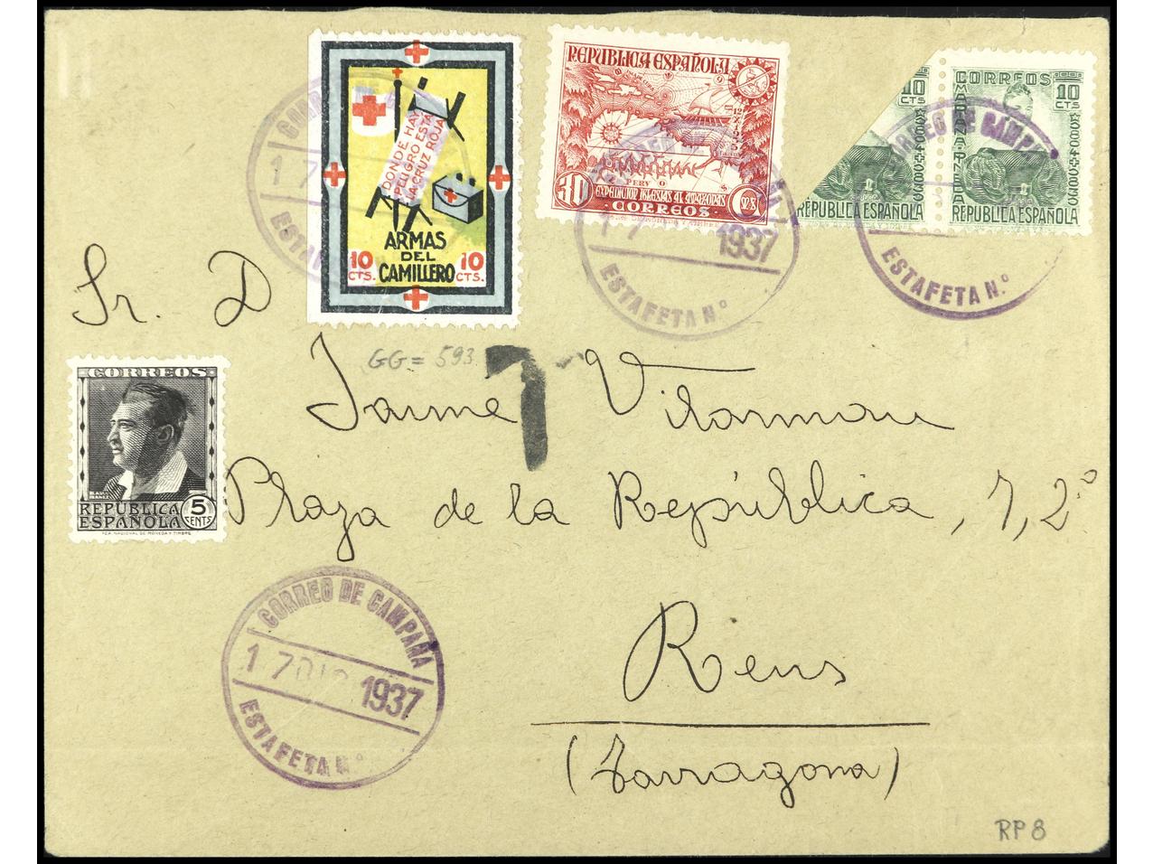 ESPAÑA GUERRA CIVIL. CRUZ ROJA. Carta circulada del FRENTE DE CÓRDOBA a REUS el 17 Dic. 1937. PRECIOSA. MUY RARA. GG.1635. (Image1)