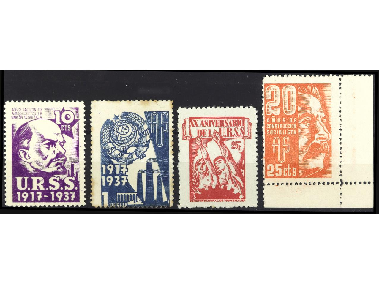 ESPAÑA GUERRA CIVIL. AMIGOS DE LA UNIÓN SOVIÉTICA. Lote de 4 sellos. PRECIOSO. RARO. GG.1683/7. (Image1)