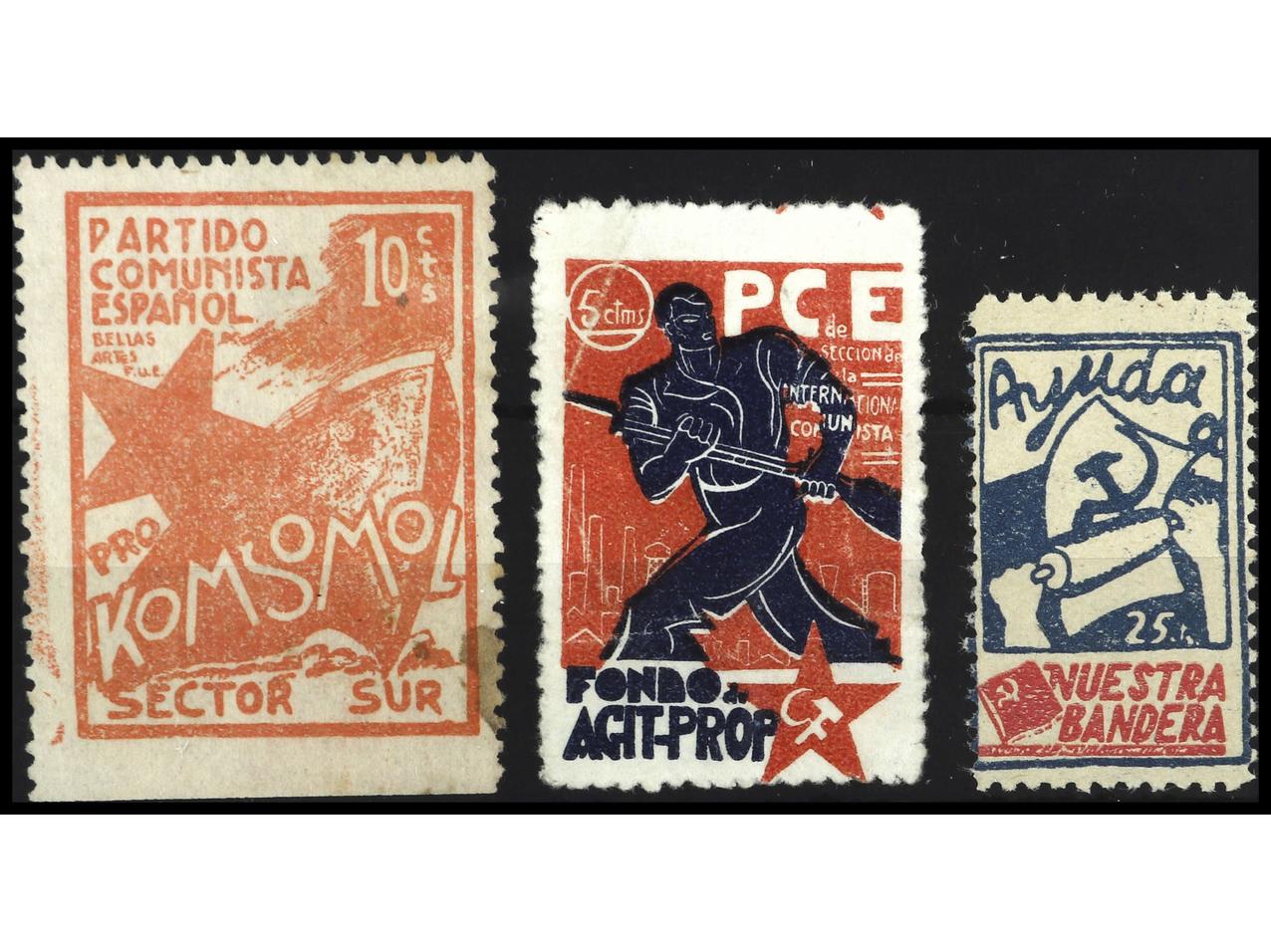 ESPAÑA GUERRA CIVIL. P.C.E.3 Sellos. PRECIOSOS. RAROS. GG.1811/4. (Image1)