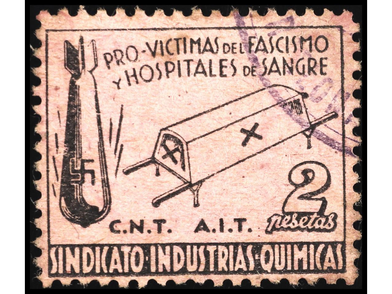 ESPAÑA GUERRA CIVIL. SINDICATO DE INDUSTRIAS QUÍMICAS. 2 pts. rosa. MUY RARO. (Image1)