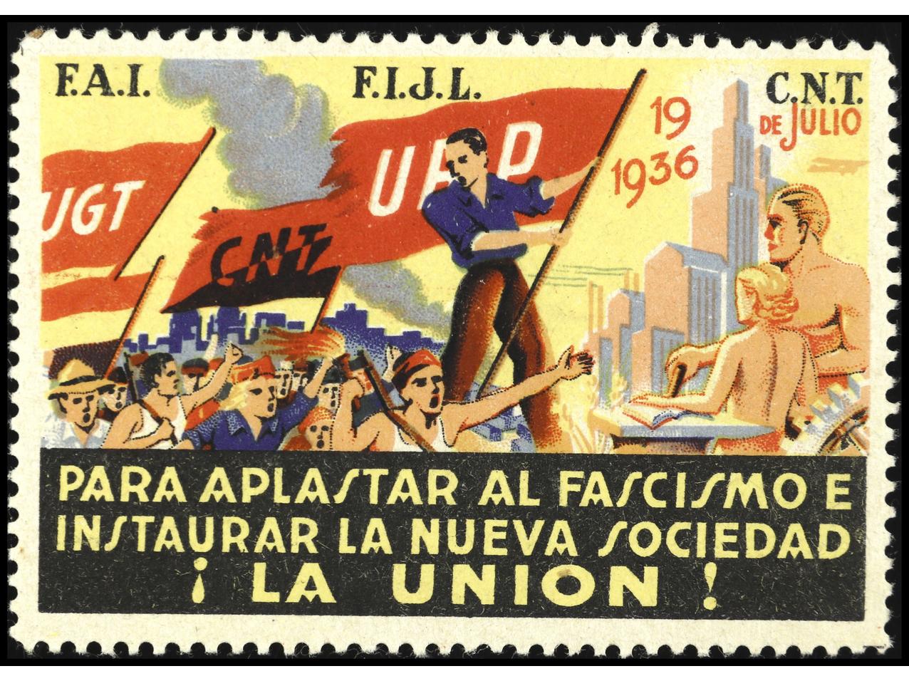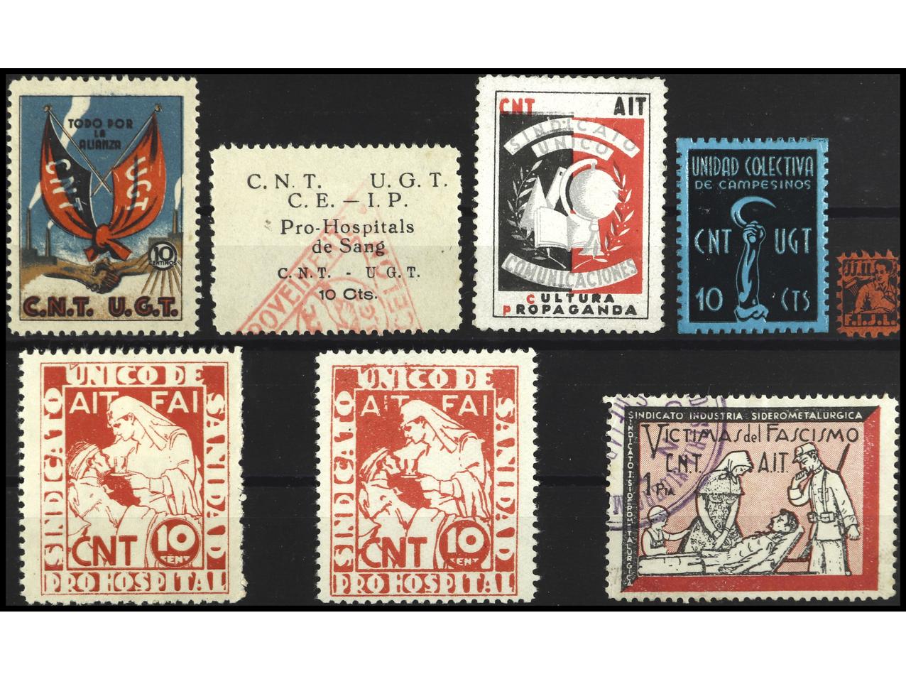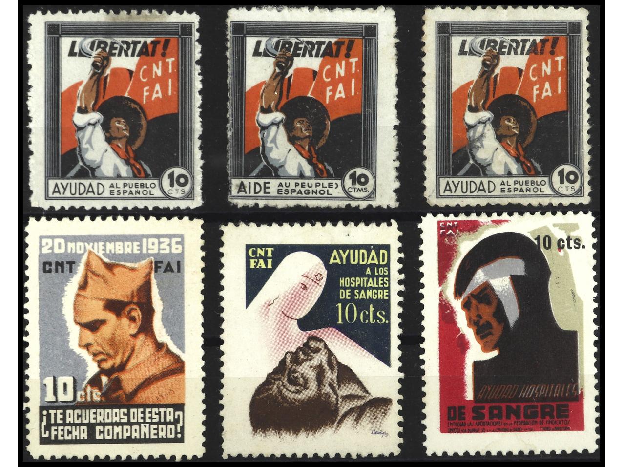 ESPAÑA GUERRA CIVIL. C.N.T. y F.A.I. Lote compuesto por 6 sellos. BONITO. RARO. GG.1870/8. (Image1)