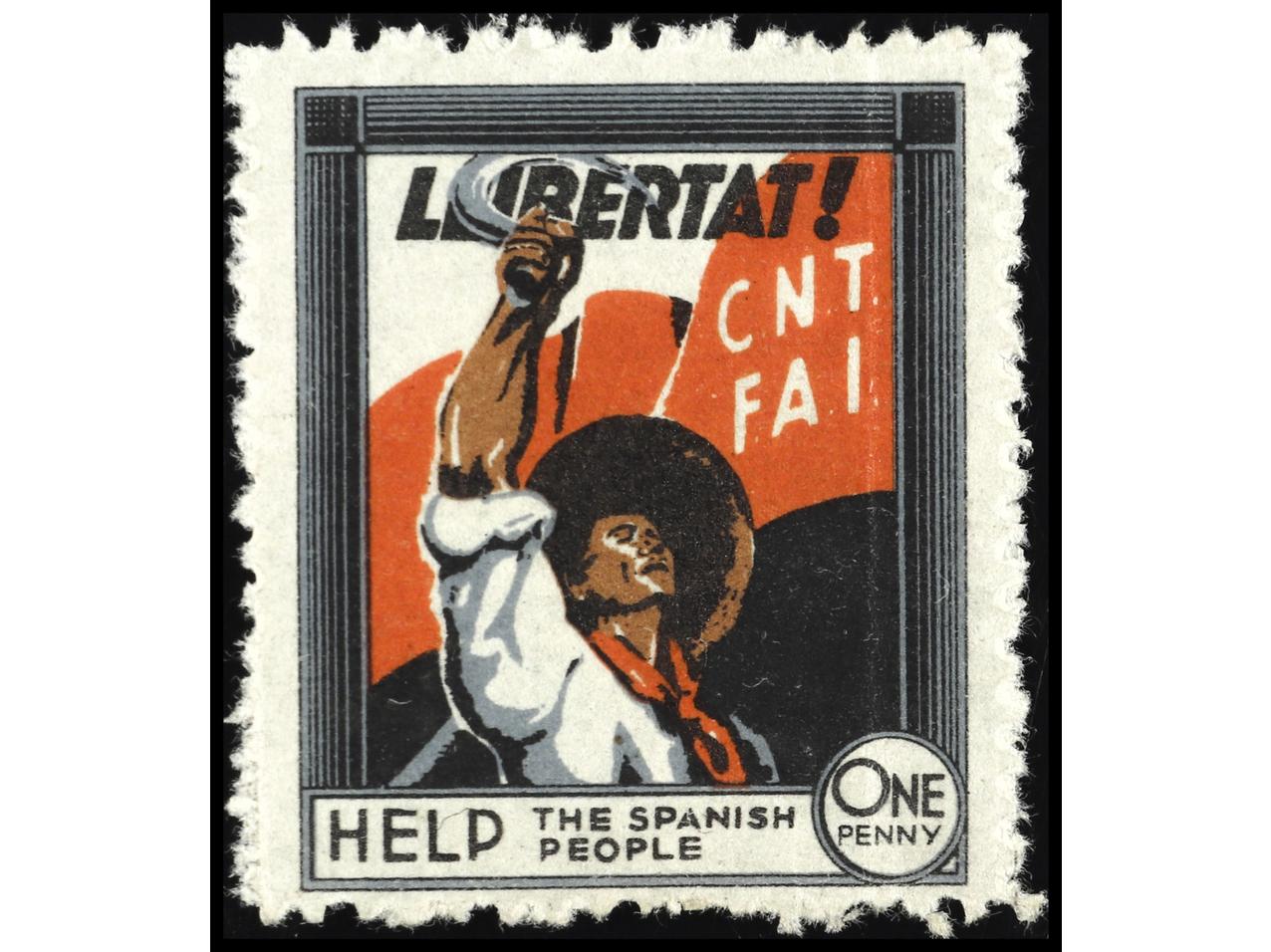 ESPAÑA GUERRA CIVIL. C.N.T. - F.A.I. Sello de ONE CENT. HELP THE SPANISH PEOPLE. MUY RARO. GG.1870. (Image1)