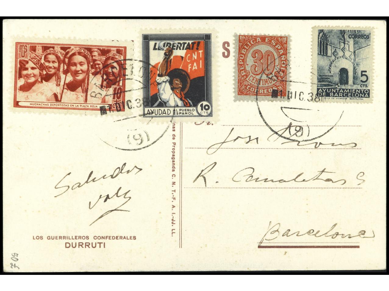 ESPAÑA GUERRA CIVIL. Tarjeta de DURRUTI circulada por correo interior de BARCELONA. RARA. GG.1870. (Image1)