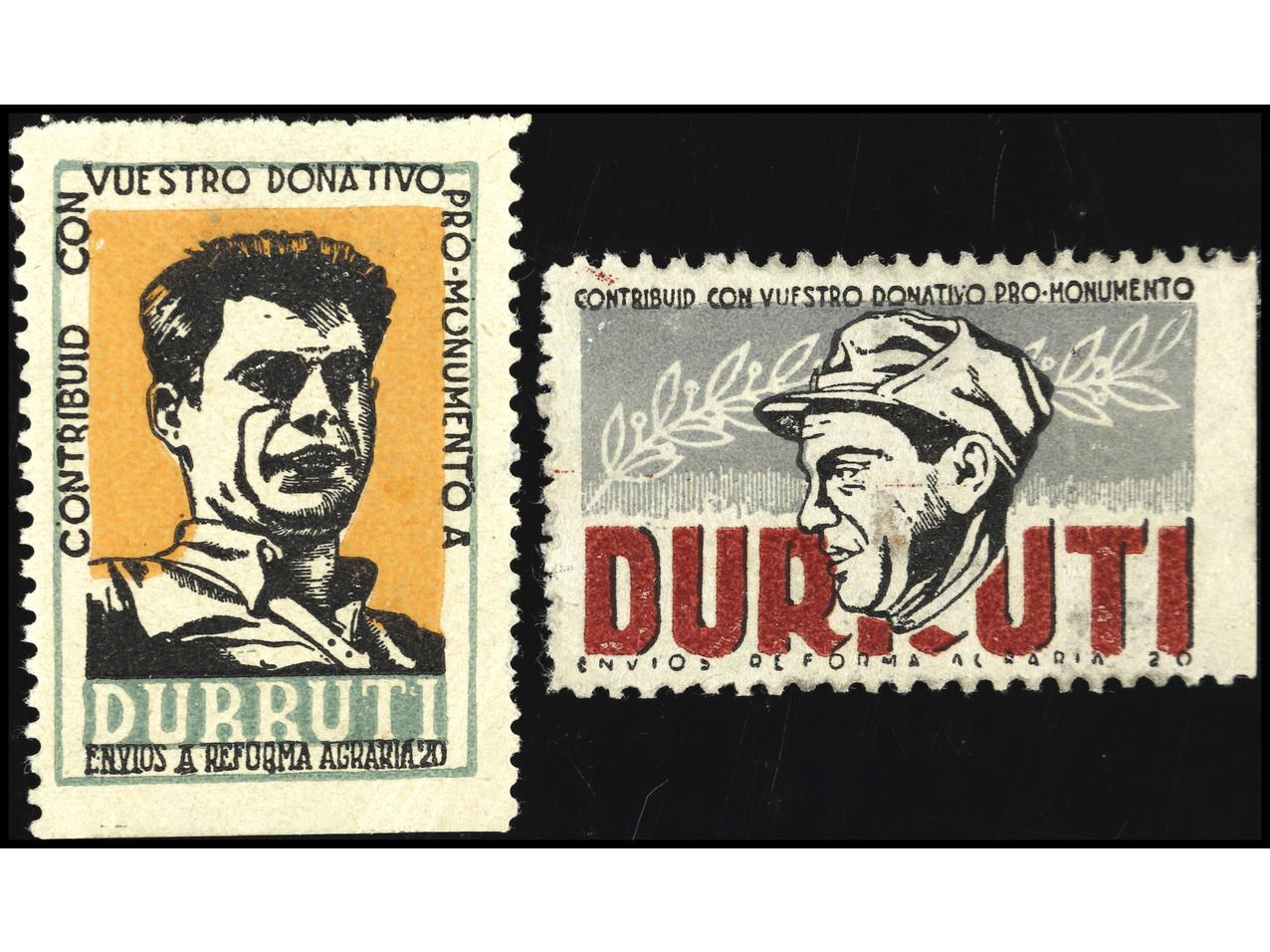 ESPAÑA GUERRA CIVIL. PRO MONUMENTO DURRUTI. 2 Sellos. PRECIOSOS. RAROS. GG.1956/7. (Image1)