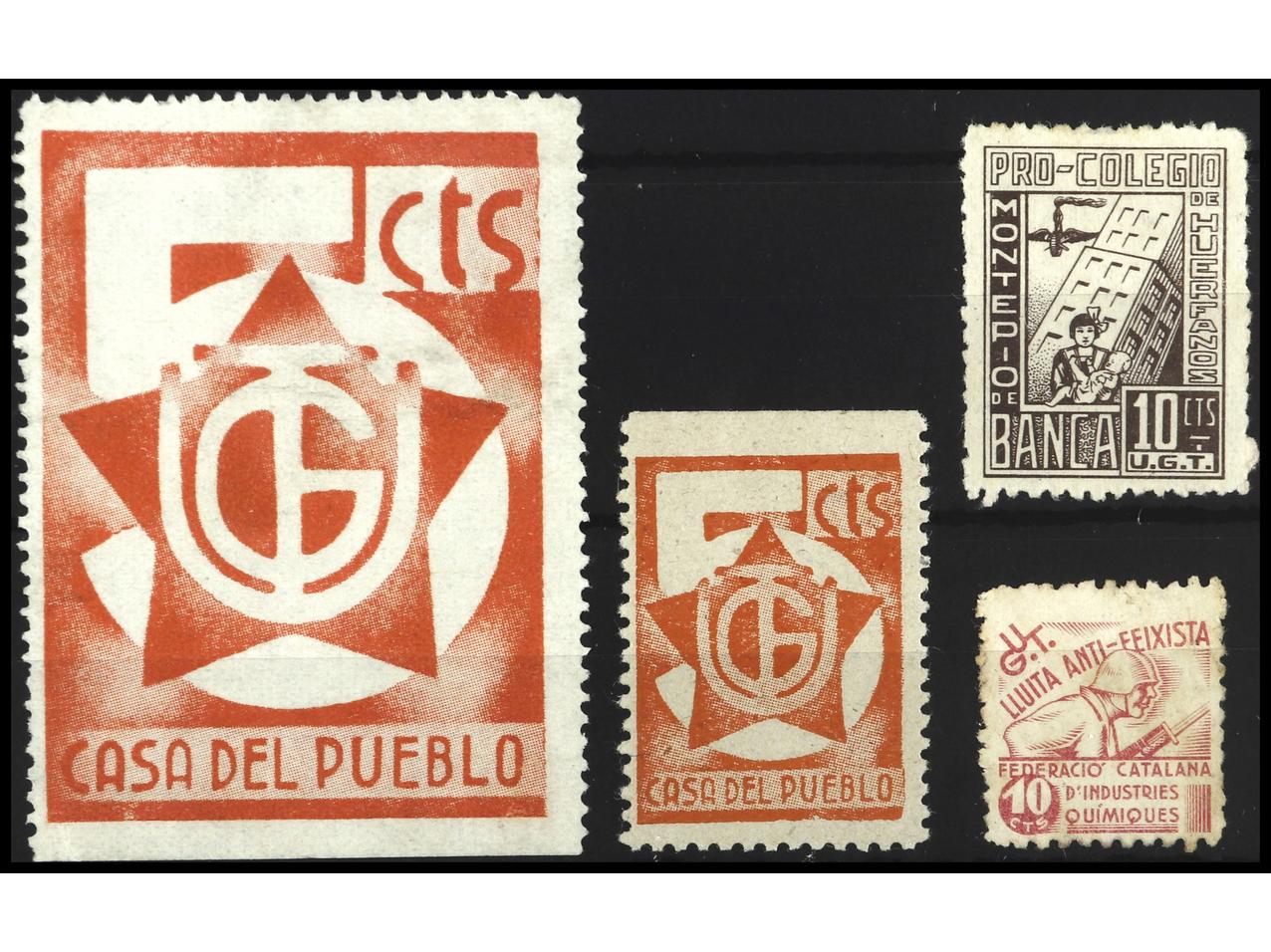 ESPAÑA GUERRA CIVIL. U.G.T. Lote compuesto por 4 sellos. PRECIOSO. RARO. GG.1985/94. (Image1)