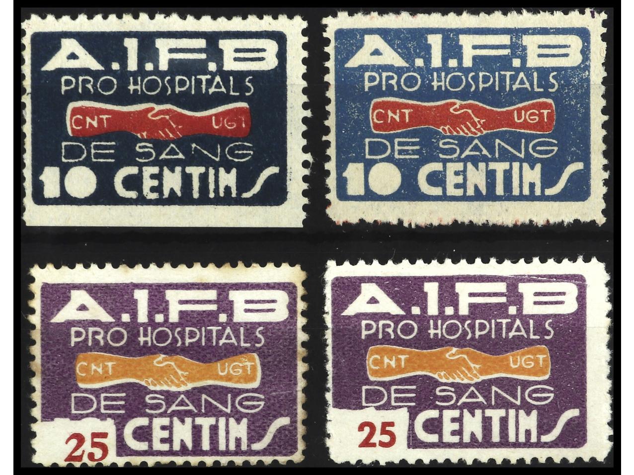 ESPAÑA GUERRA CIVIL. PRO HOPITALES DE SANGRE. 4 Sellos de 10 y 25 cts. PRECIOSOS. RAROS. GG.2047/8. (Image1)