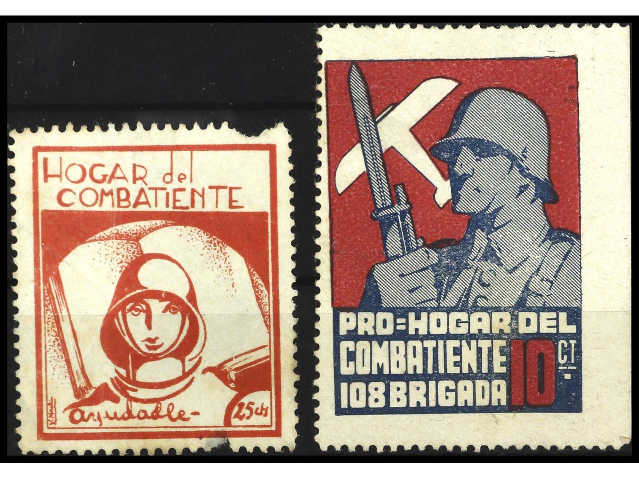 ESPAÑA GUERRA CIVIL. PRO HOGAR DEL COMBATIENTE. 2 Sellos, uno con defecto en el dentado. RAROS. GG.2118 y 2120. (Image1)
