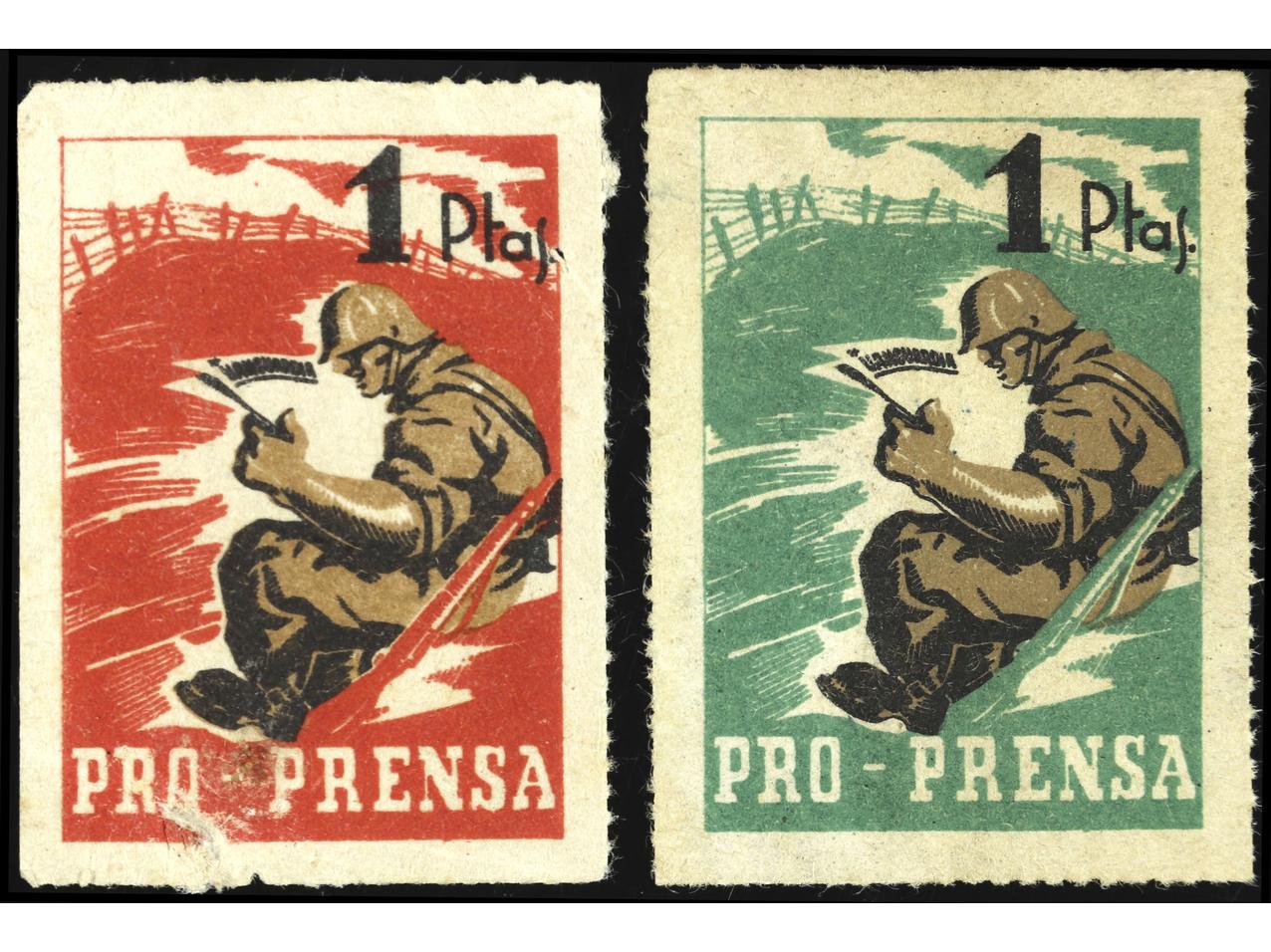 ESPAÑA GUERRA CIVIL. PRO PRENSA. 2 Sellos de 1 pta. PRECIOSOS. RAROS. GG.2130/1. (Image1)