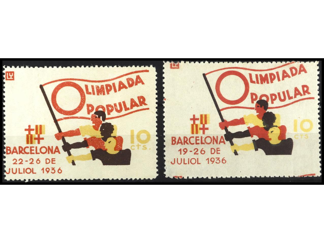 ESPAÑA GUERRA CIVIL. OLIMPIADA POPULAR. 2 Sellos con leyendas diferentes. PRECIOSOS. MUY RAROS. GG.2132/3. (Image1)