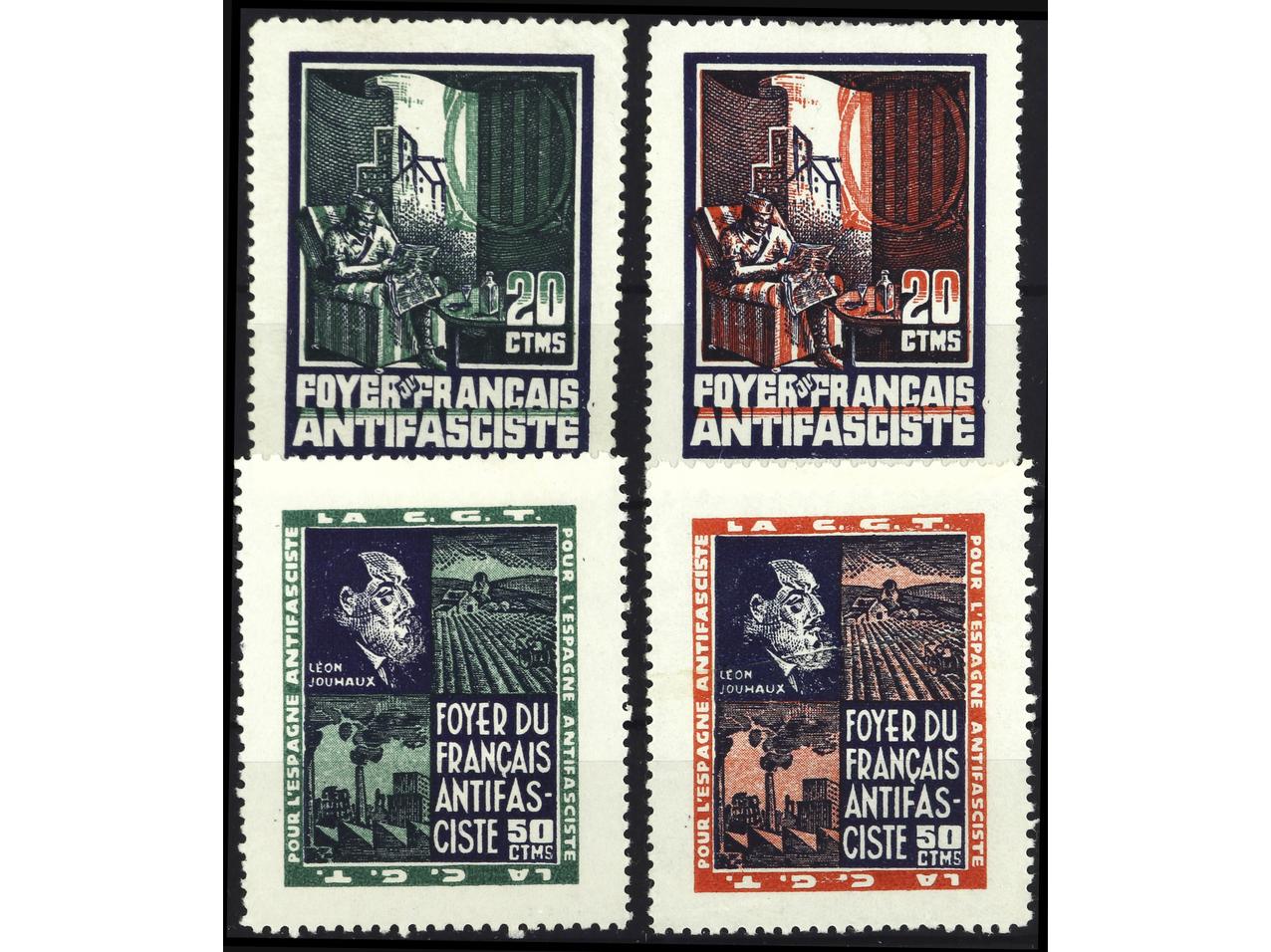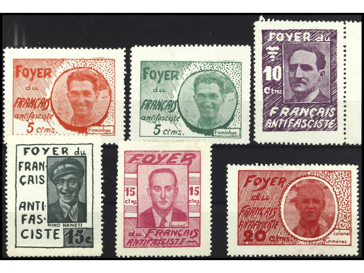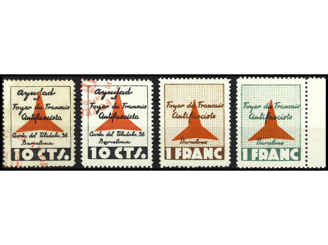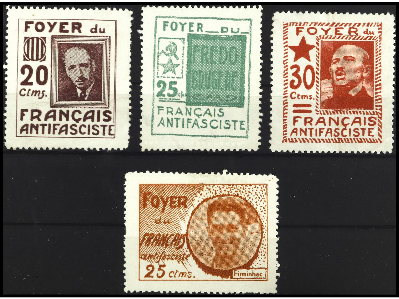 ESPAÑA GUERRA CIVIL. FOYER DU FRANCAIS ANTIFASCISTA. 4 Sellos. PRECIOSOS. RAROS. GG.2155/62. (Image1)