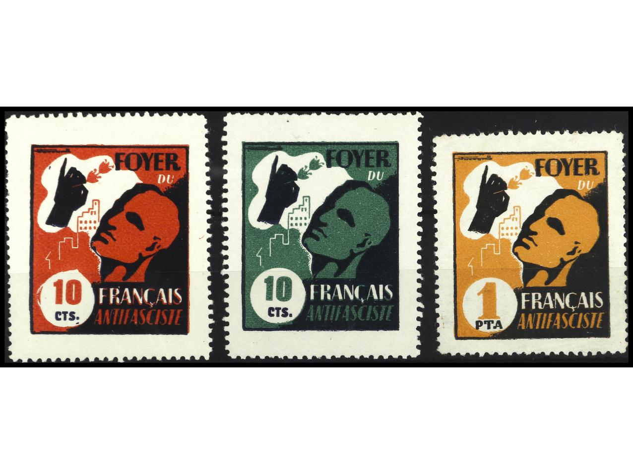 ESPAÑA GUERRA CIVIL. FOYER DU FRANCAIS ANTIFASCISTA. Serie de 3 valores. PRECIOSA. RARA. GG.2197/9. (Image1)