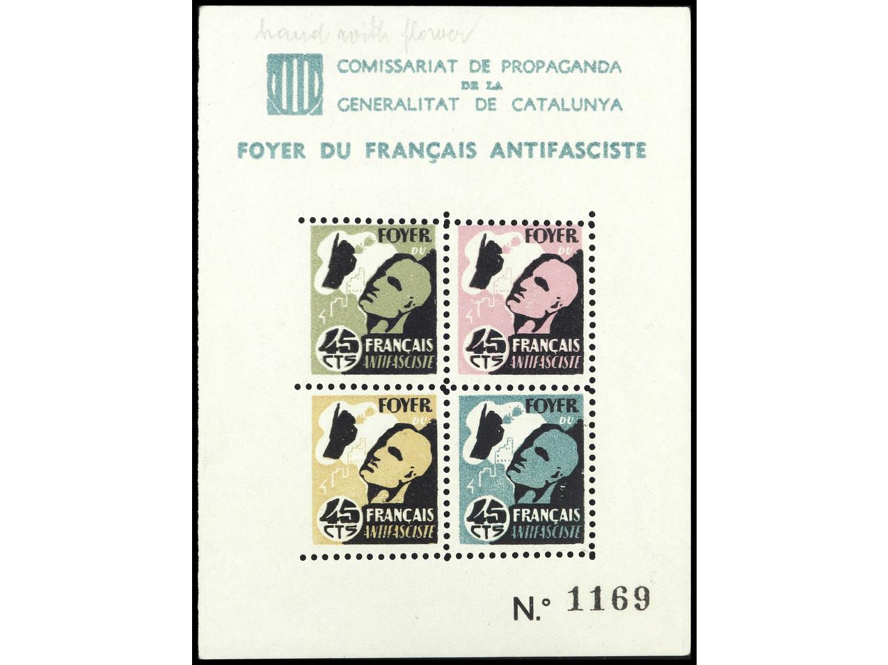 ESPAÑA GUERRA CIVIL. FOYER DU FRANCAIS ANTIFASCISTA. HB. PRECIOSA. RARA. GG.2200. (Image1)