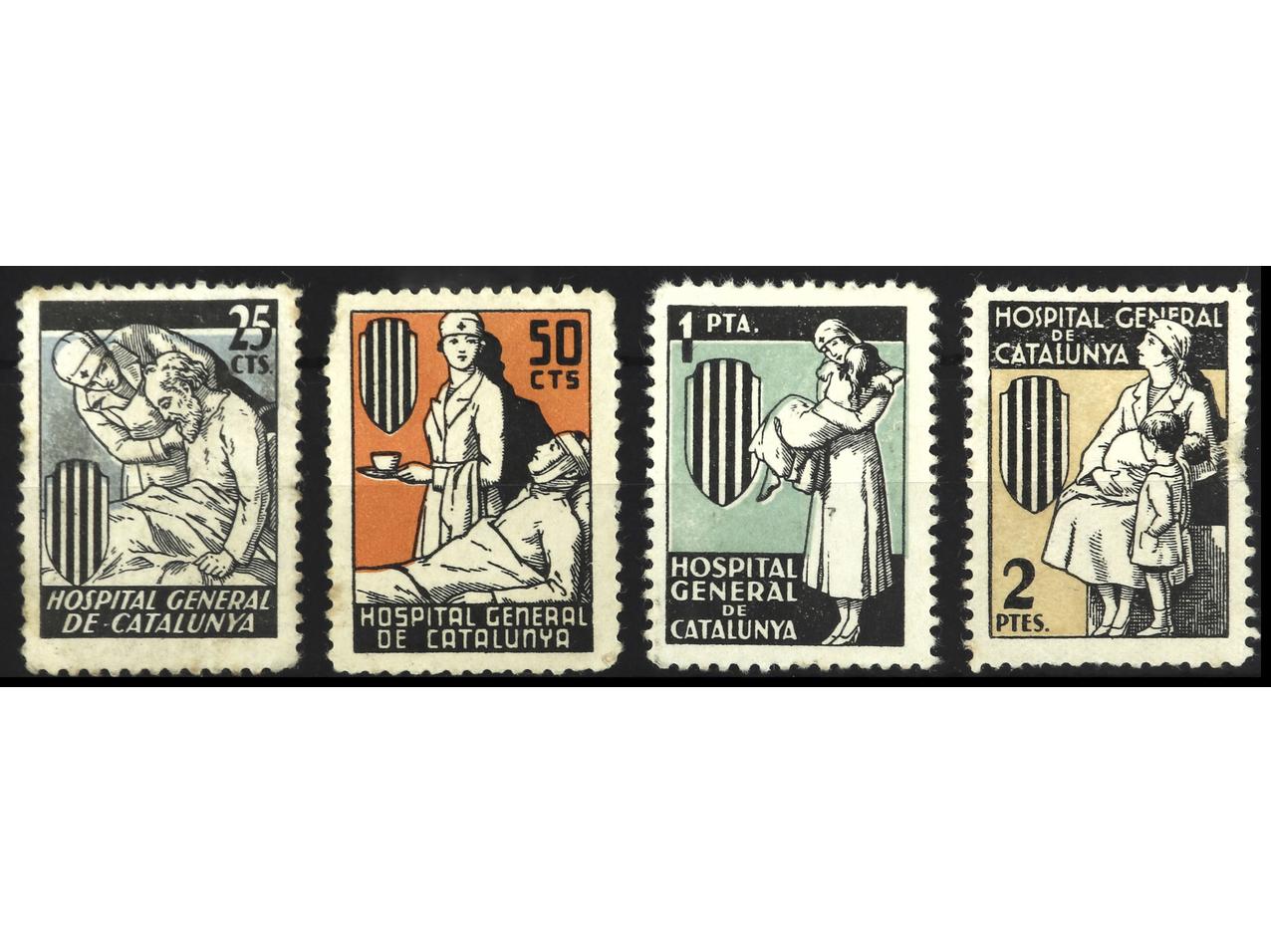 ESPAÑA GUERRA CIVIL. HOSPITAL GENERAL DE CATALUNYA. 4 Sellos (25 cts., 50 cts., 1 pta. y 2 pts.). PRECIOSOS. RAROS. GG.2151/4. (Image1) (Image2)
