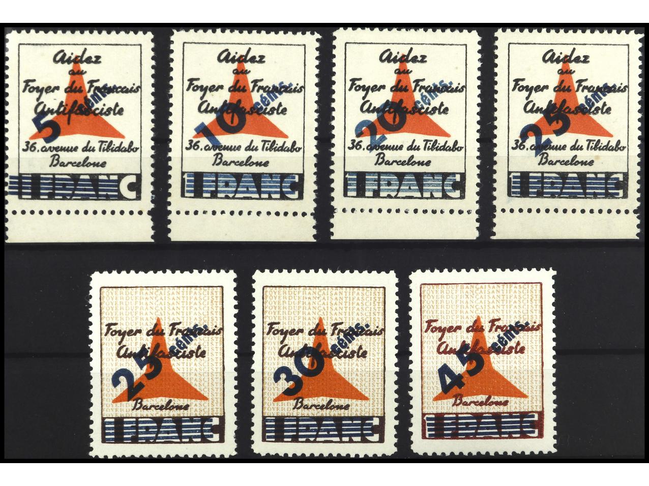 ESPAÑA GUERRA CIVIL. FOYER DU FRANCAIS ANTIFASCISTA. 7 Sellos habilitados para nuevos valores. PRECIOSOS. MUY RAROS. GG.2170/96. (Image1) (Image2)