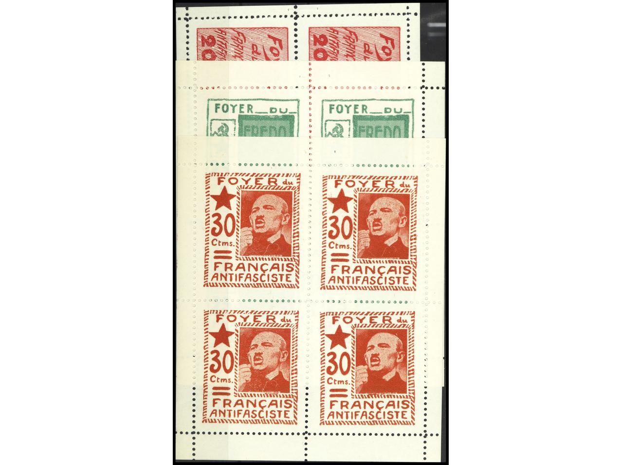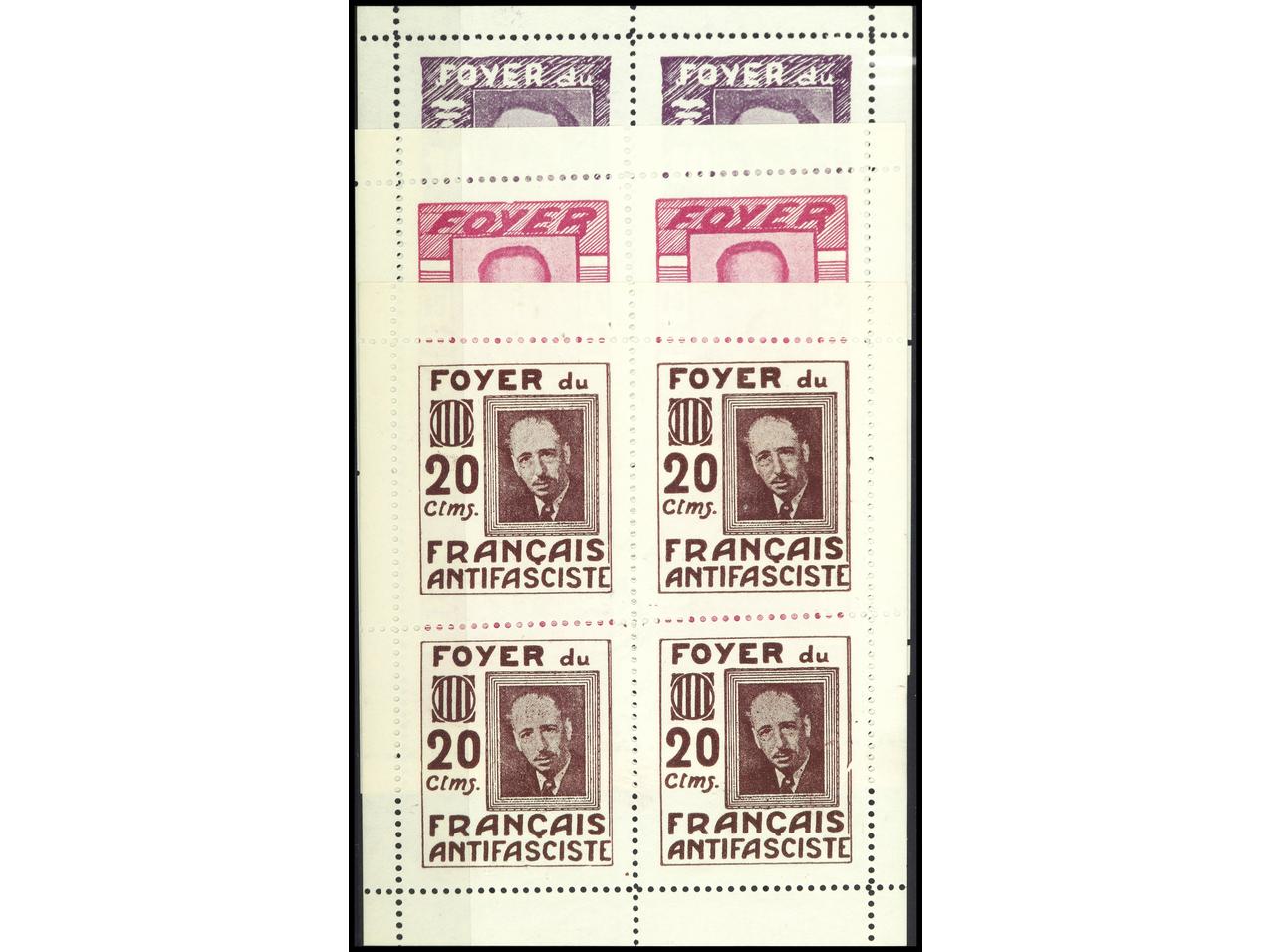 ESPAÑA GUERRA CIVIL. FOYER DU FRANCAIS ANTIFASCISTA. 8 Minipliegos de 4 sellos cada uno. Precioso conjunto. MUY RARO. GG.2216/9/20/21/22/23/25/26.