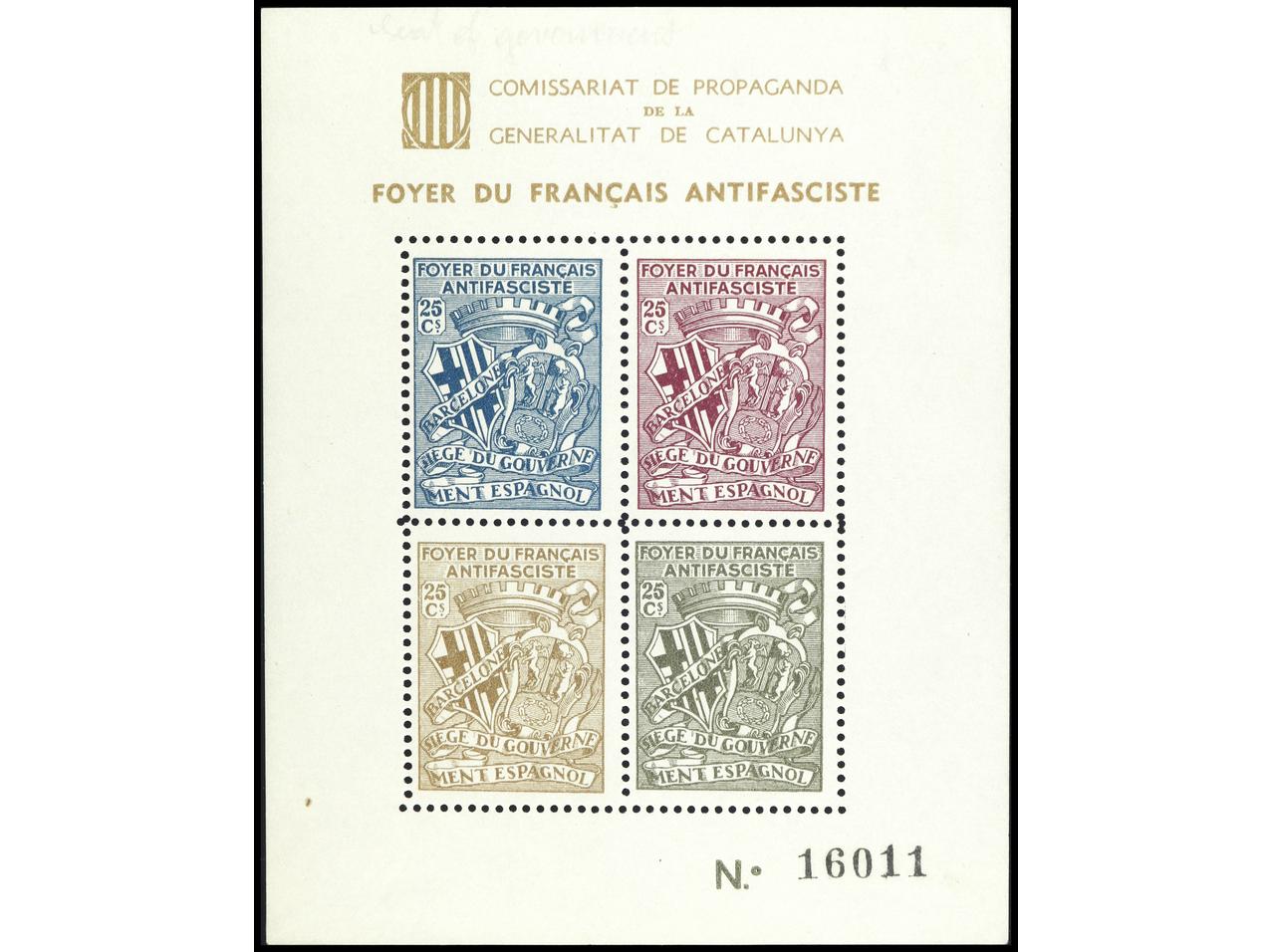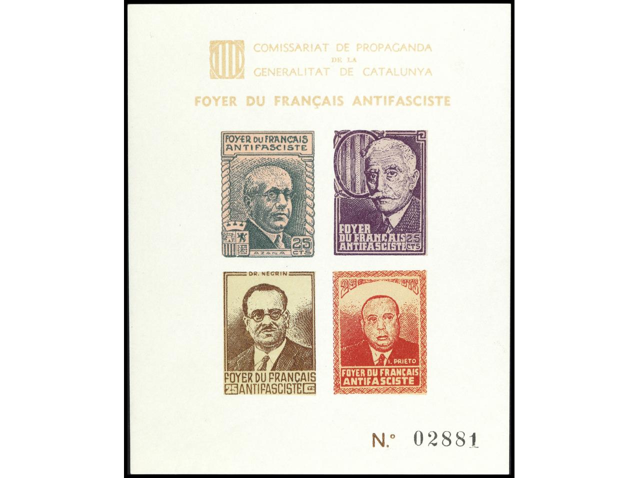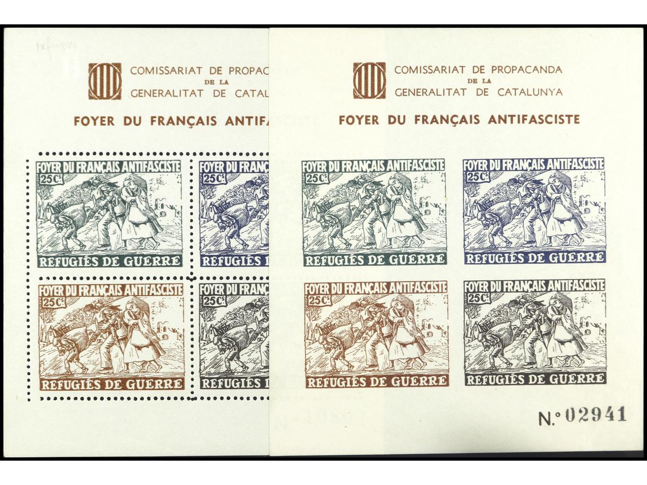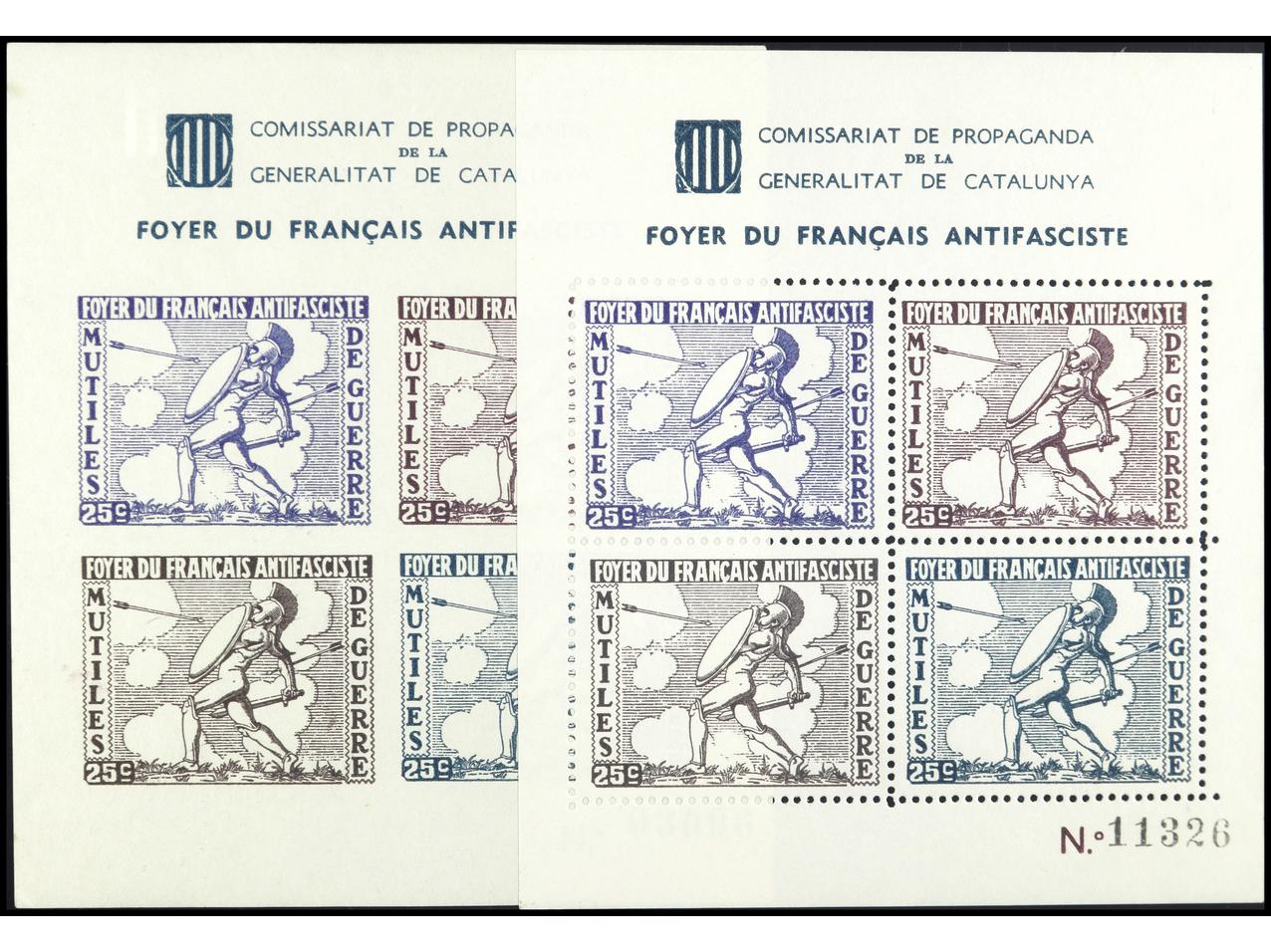 ESPAÑA GUERRA CIVIL. FOYER DU FRANCAIS ANTIFASCISTE. 2 HB. (dentada y SIN DENTAR). PRECIOSAS. RARAS. GG.2259/60. (Image1) (Image2)