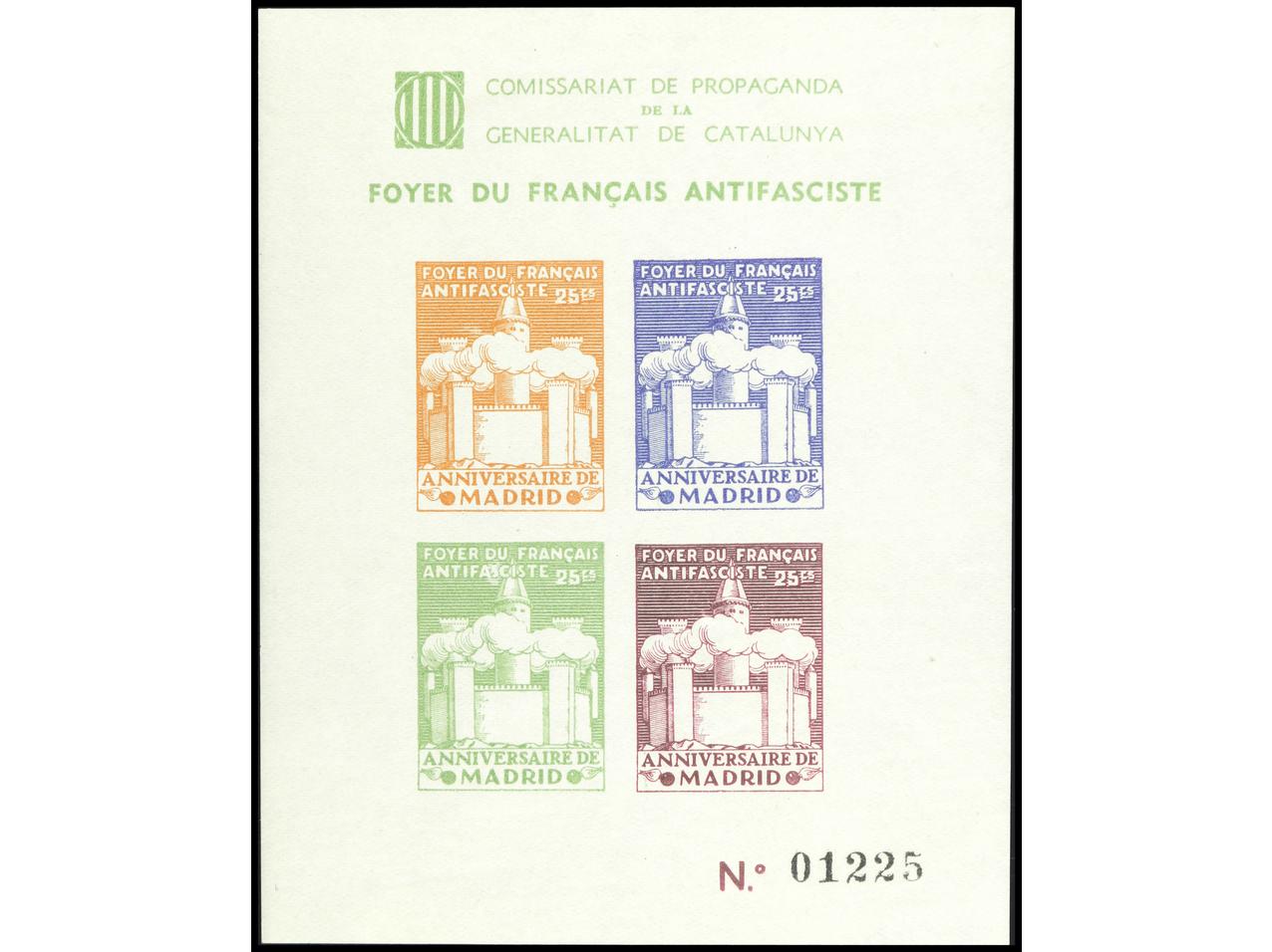 ESPAÑA GUERRA CIVIL. FOYER DU FRANCAIS ANTIFASCISTE. ANNIVERSAIRE DE MADRID. 2 HB. (dentada y SIN DENTAR). PRECIOSAS. MUY RARAS. GG.2269/70. (Image1)