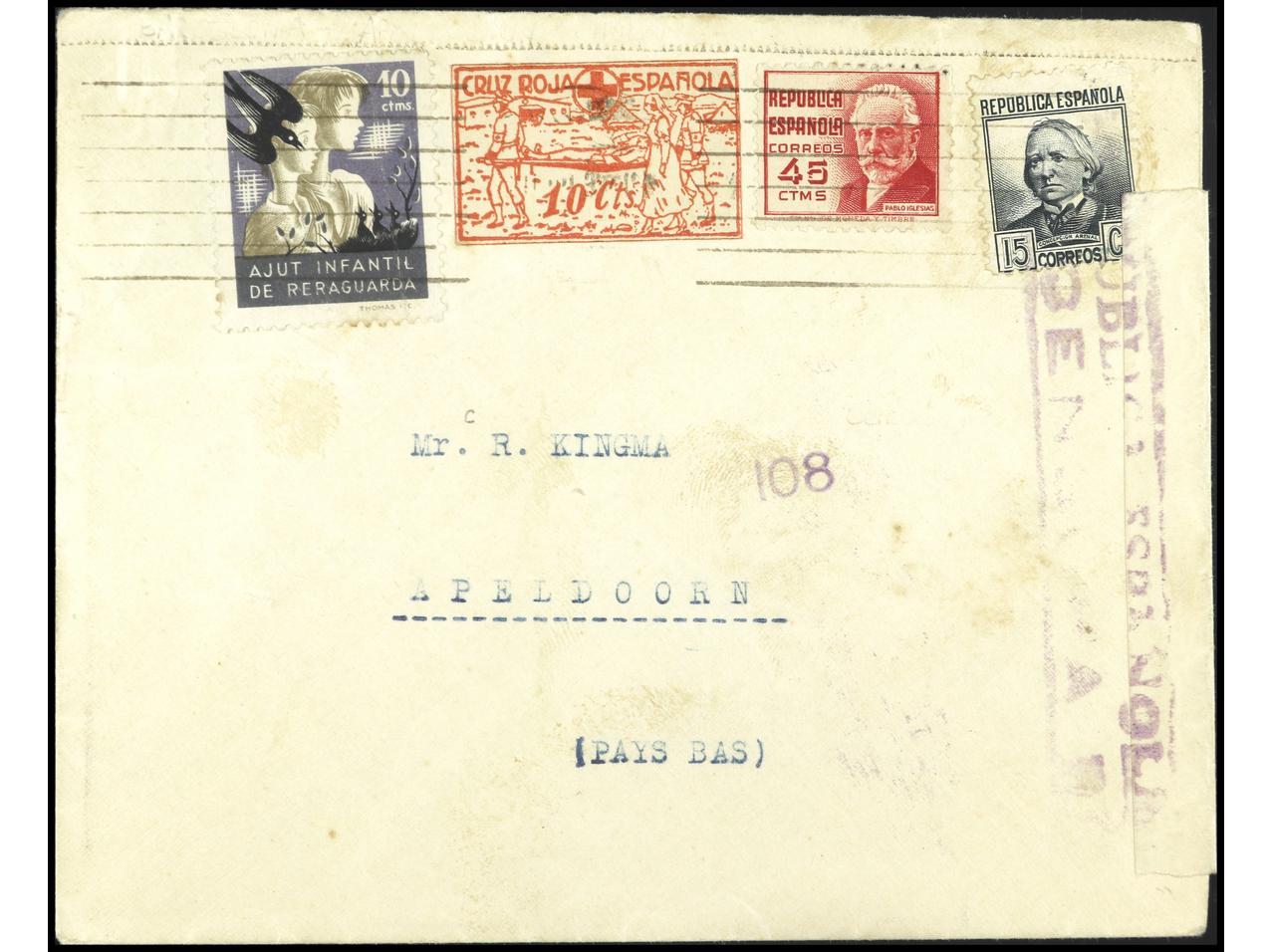 ESPAÑA GUERRA CIVIL. Carta dirigida a APELDOORN (HOLANDA) con raro franqueo. PRECIOSA. GG.2291. (Image1)
