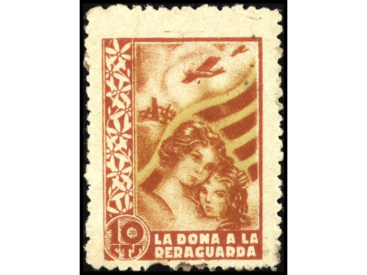 ESPAÑA GUERRA CIVIL. LA DONA A LA RERAGUARDA. 10 cts. con un diente corto. PRECIOSO. MUY RARO. GG.2308. (Image1)