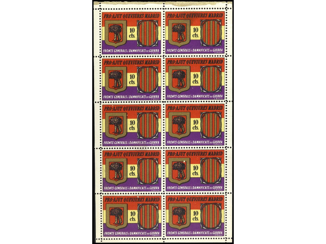 ESPAÑA GUERRA CIVIL. AYUDA A MADRID. 10 cts. Minipliego de 10 sellos. PRECIOSO. RARO. GG.2346. (Image1)