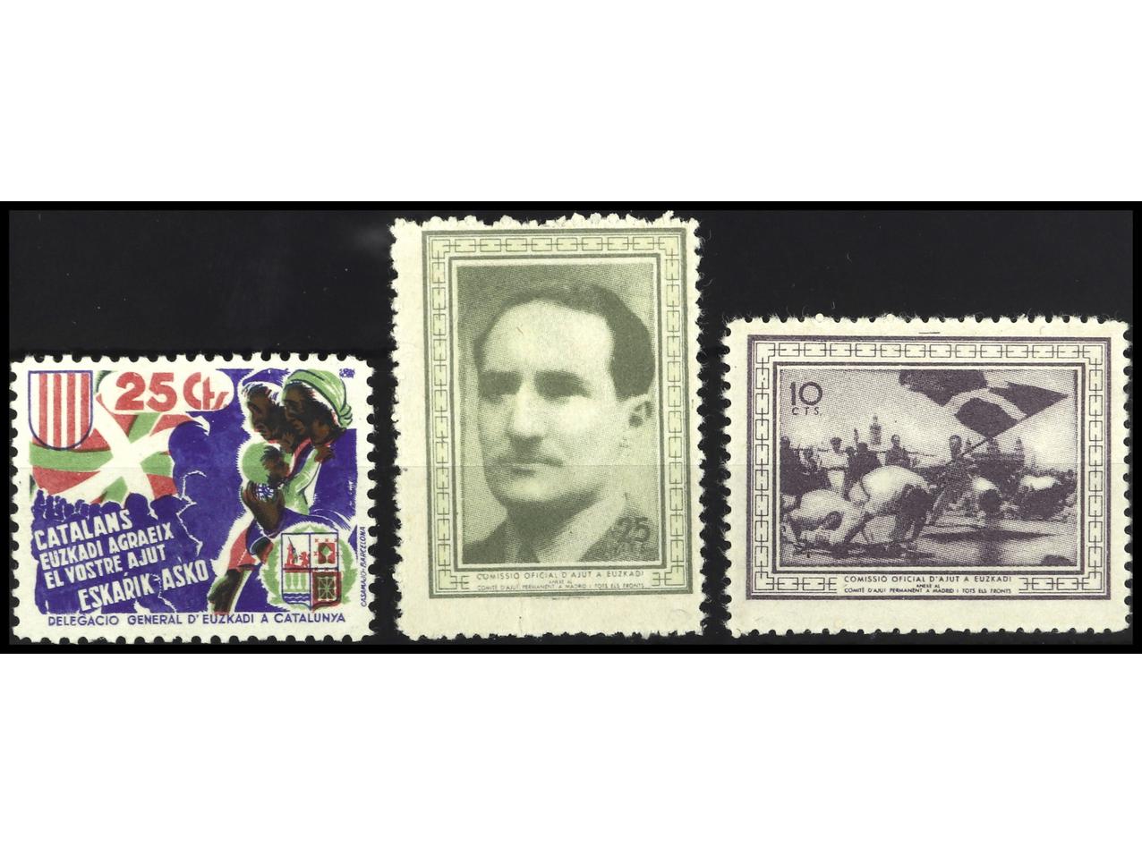 ESPAÑA GUERRA CIVIL. COMISIÓN OFICIAL DE AYUDA A EUSKADI. 3 Sellos. PRECIOSOS. RAROS. GG.2334/5/51. (Image1)