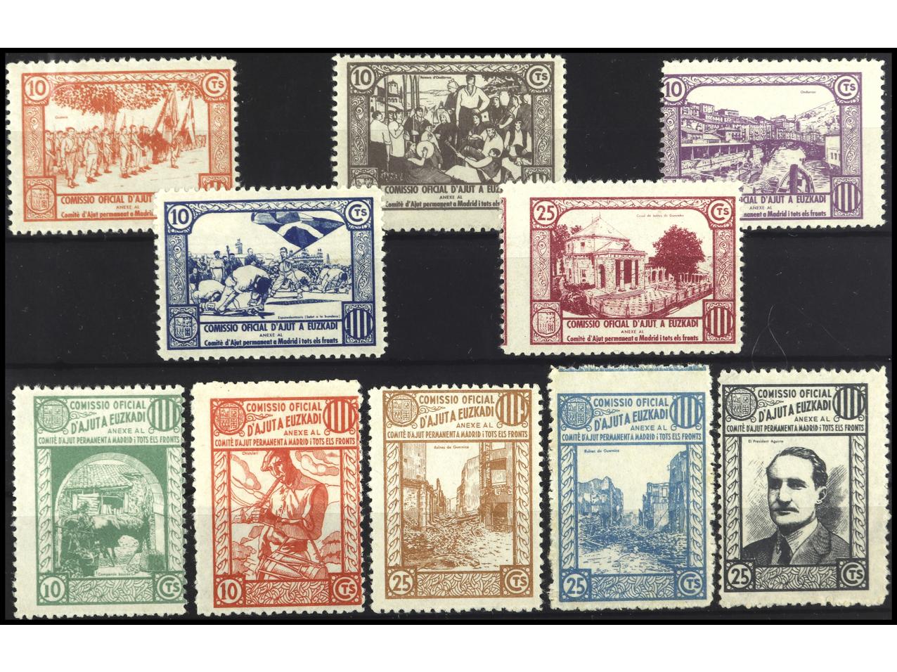 ESPAÑA GUERRA CIVIL. COMISIÓN OFICIAL DE AYUDA A EUSKADI. SERIE COMPLETA de 10 valores. PRECIOSA. MUY RARA. GG.2336/45. (Image1)