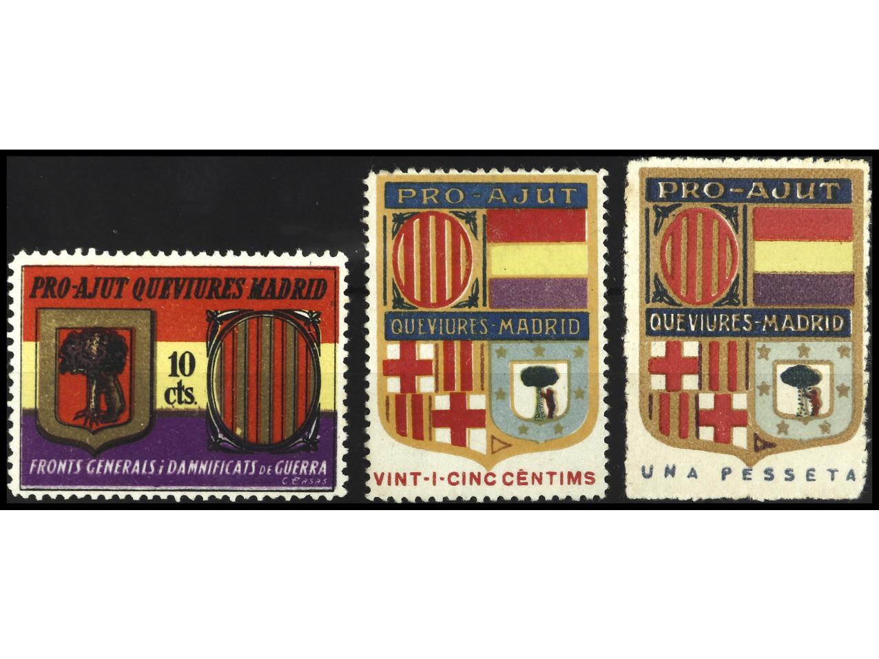 ESPAÑA GUERRA CIVIL. AYUDA A MADRID. 10 cts., 25 cts. y 1 pta. PRECIOSOS. MUY RAROS. GG.2346/9. (Image1)