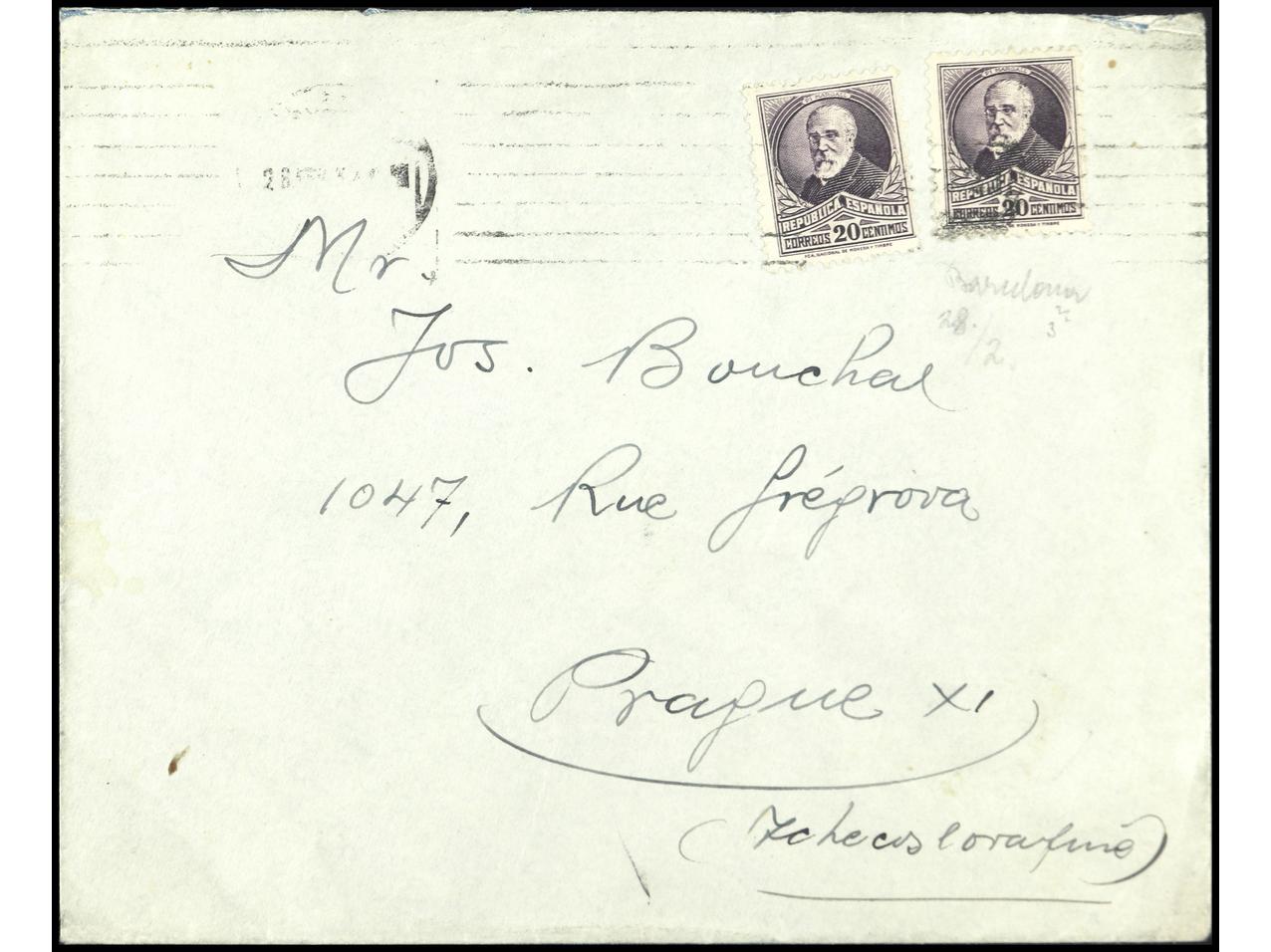 ESPAÑA GUERRA CIVIL. REFIGIADOS DE GUERRA. HB. SIN DENTAR sobre carta de BARCELONA a ZURICH. MUY RARA. GG.2250.