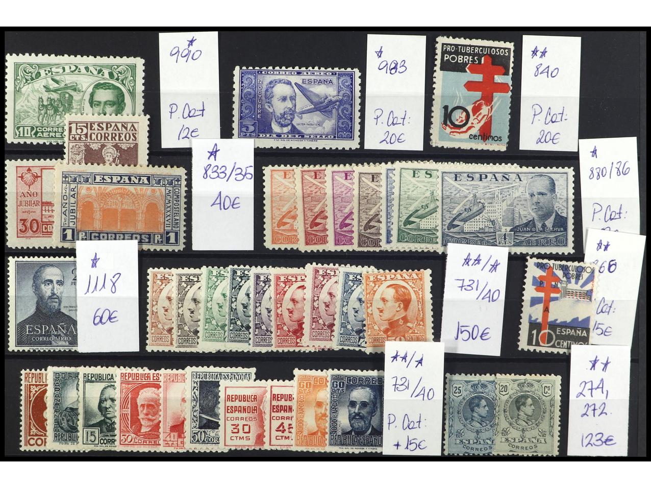 1853 ESPAÑA. Clasificador conteniendo sellos, series y hojas bloque del I y II Centenario en nuevo y usado. Hay series interesantes, incluyendo enteros Postales, Monarquia y República, sellos con facial en euros, viñetas, etc. A EXAMINAR.